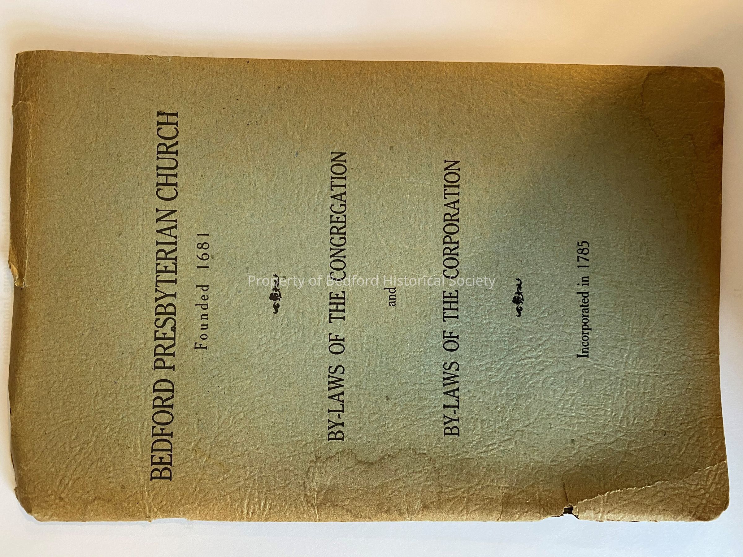 Bedford Presbyterian Church Founded 1681 By-Laws of the Congregation and By-Laws of the Corporation Incorporated in 1785Entry/Object ID