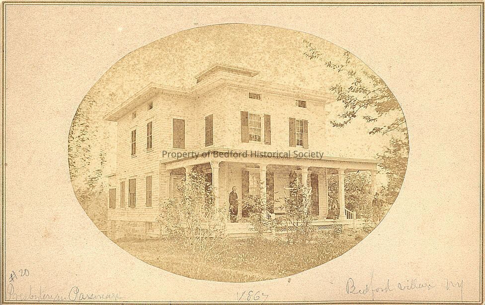 Bedford Presbyterian Church Manse, 1865 - Rev. Peter B. Heroy on porch