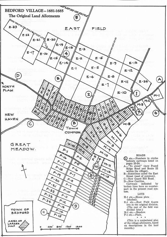 Bedford Village original land allotments, 1681-1685