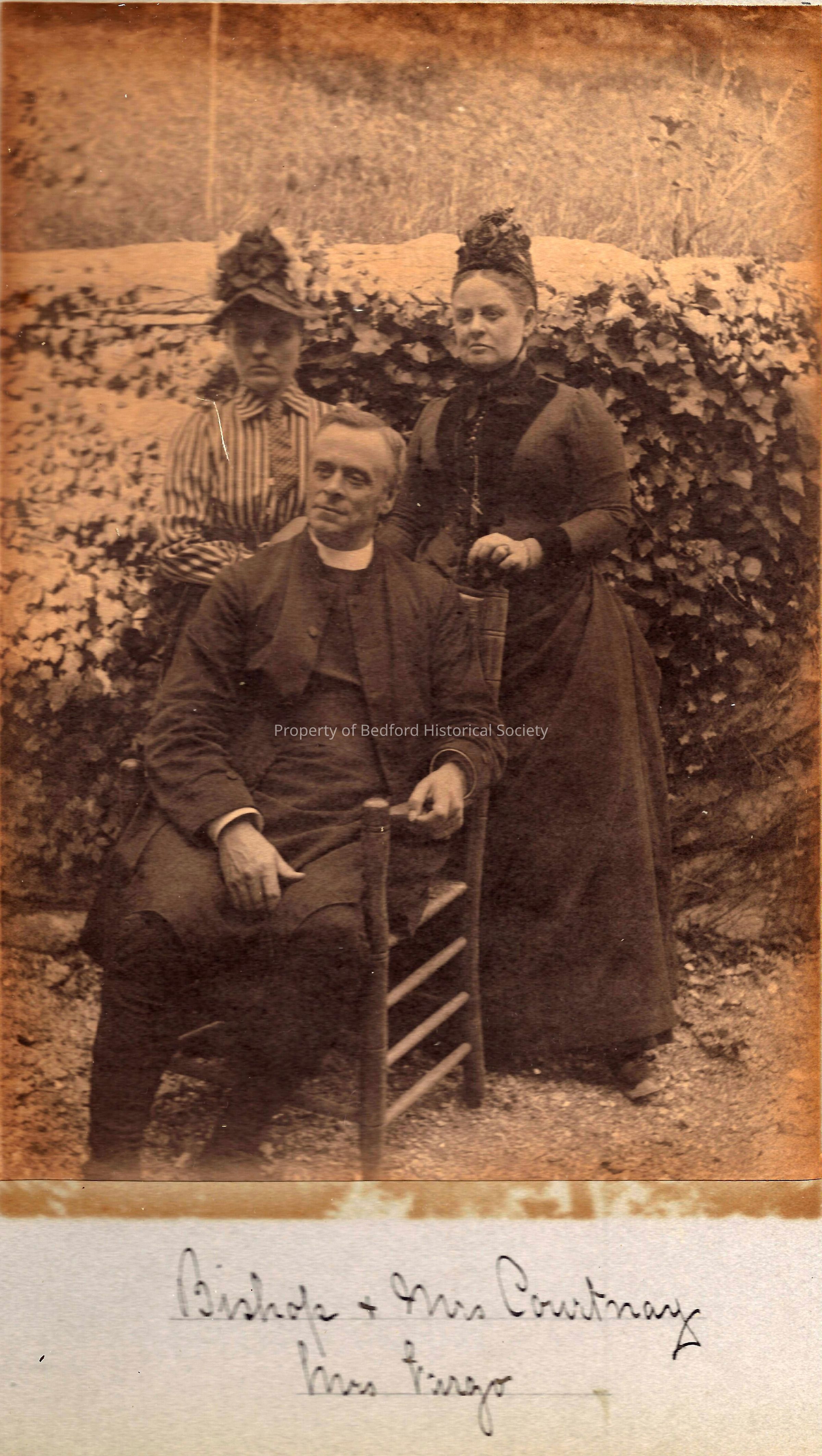 B & W photograph of Bishop & Mrs. Courtnay, and Mrs. Fargo(?), c. 1880s. Part of Renwick scrapbook.