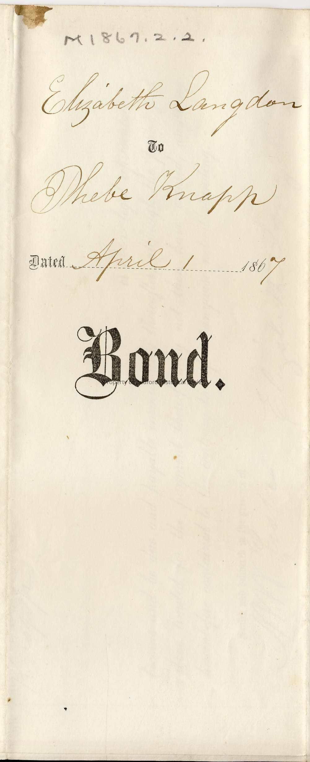 Bond: Elizabeth Langdon to Phebe Knapp, 1867
