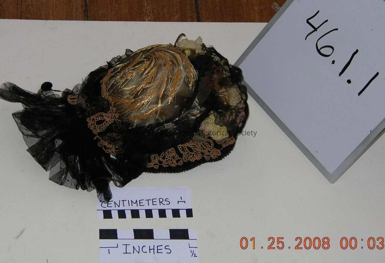 Wedding bonnet worn by Mrs. Abraham Baylis (Deborah McDonald) to the wedding of her son William Baylis