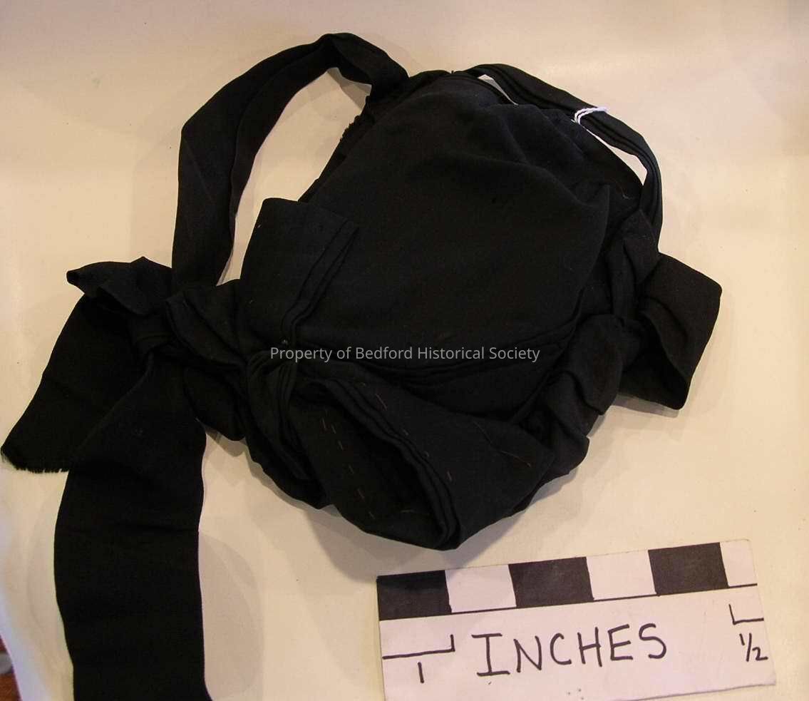 Black cotton bonnet with mesh lining, handmade