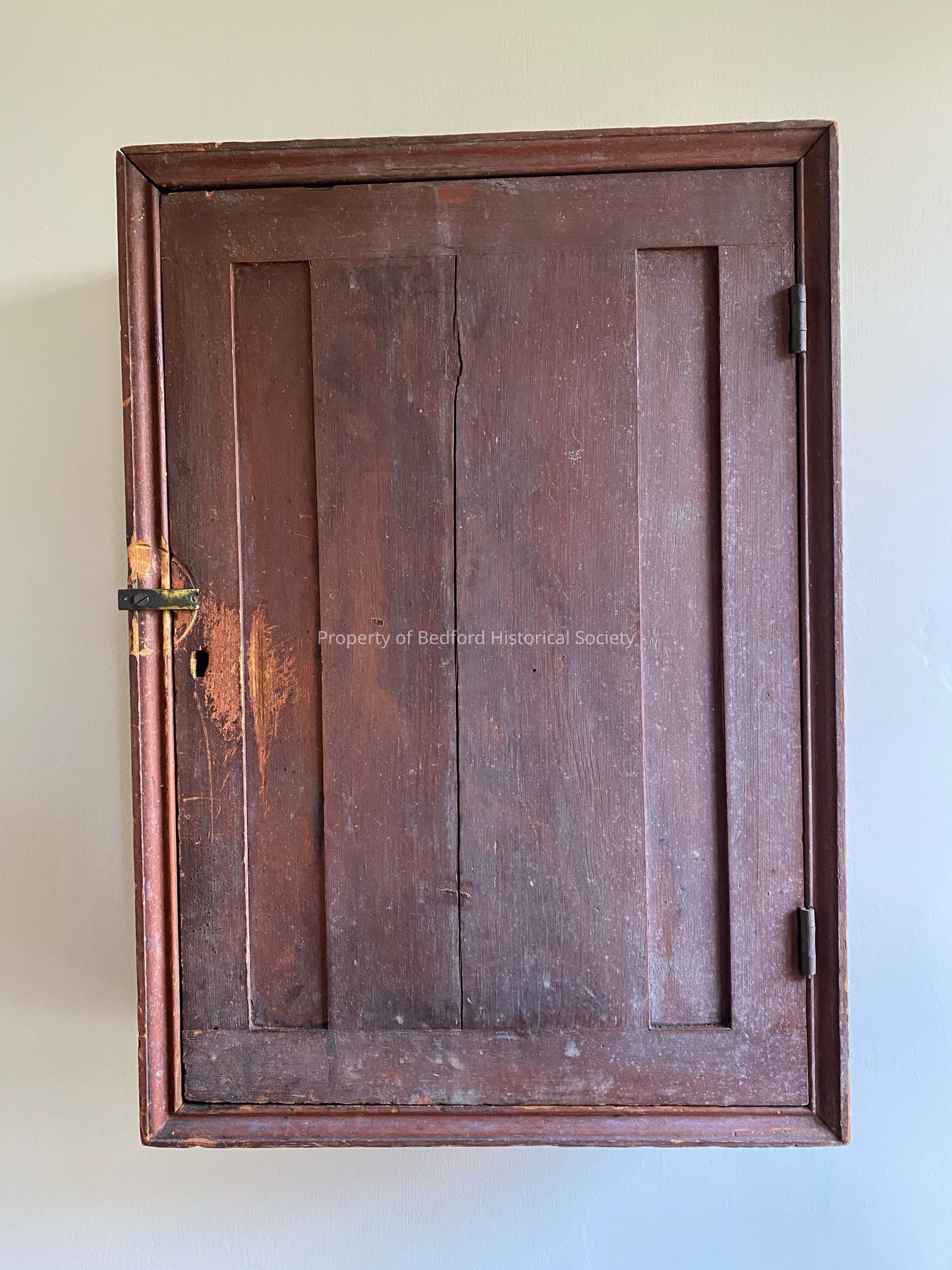 original traveling library bookcase used in 1829 Stone Jug schoolhouse. Paper label inside reads “The School District Library”- published by Harper’s Brothers, NY”