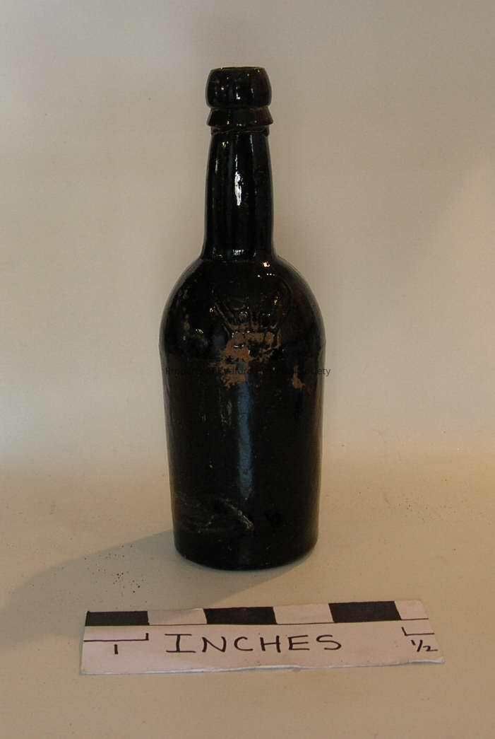 Brown glass bottle with embossed crown