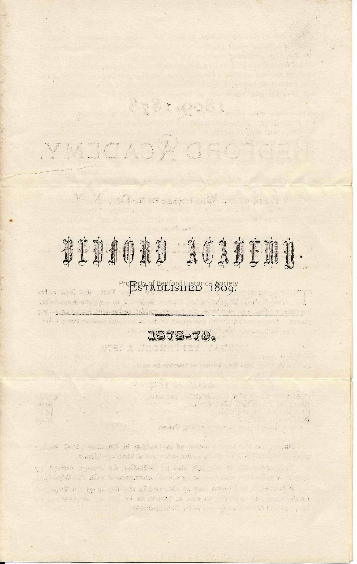Brochure for Bedford Academy, 1878-79