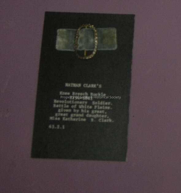 Silver oval 1 1/2" knee breeches buckle, circa 1754-1841--Revolutionary soldier, Nathan Clark, Battle of White Plains. Steel brite cut, two tooth buckle.