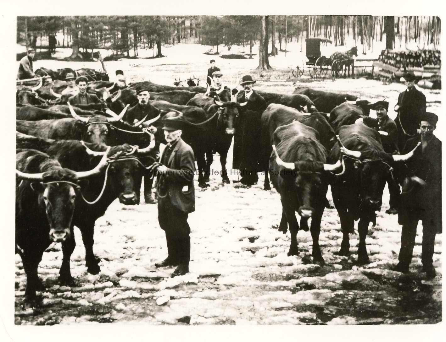 C.H. Brown (in long overcoat) pictured at Northville loading a car of oxen. Devon oxen were the most popular breed in this section of the country at the time. Same photo as 273, 977.