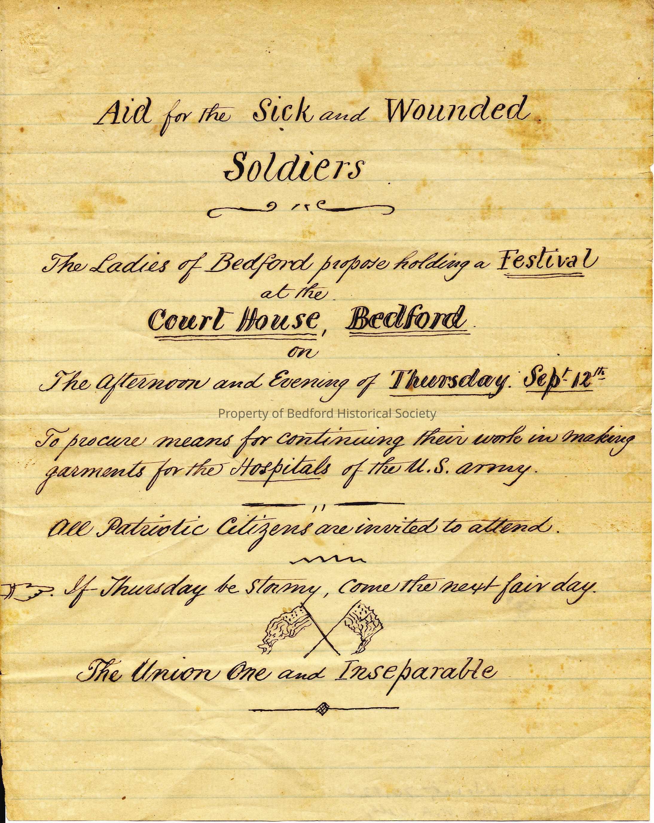Call for a Festival at the Court House to aid sick and wounded civil war soldiers