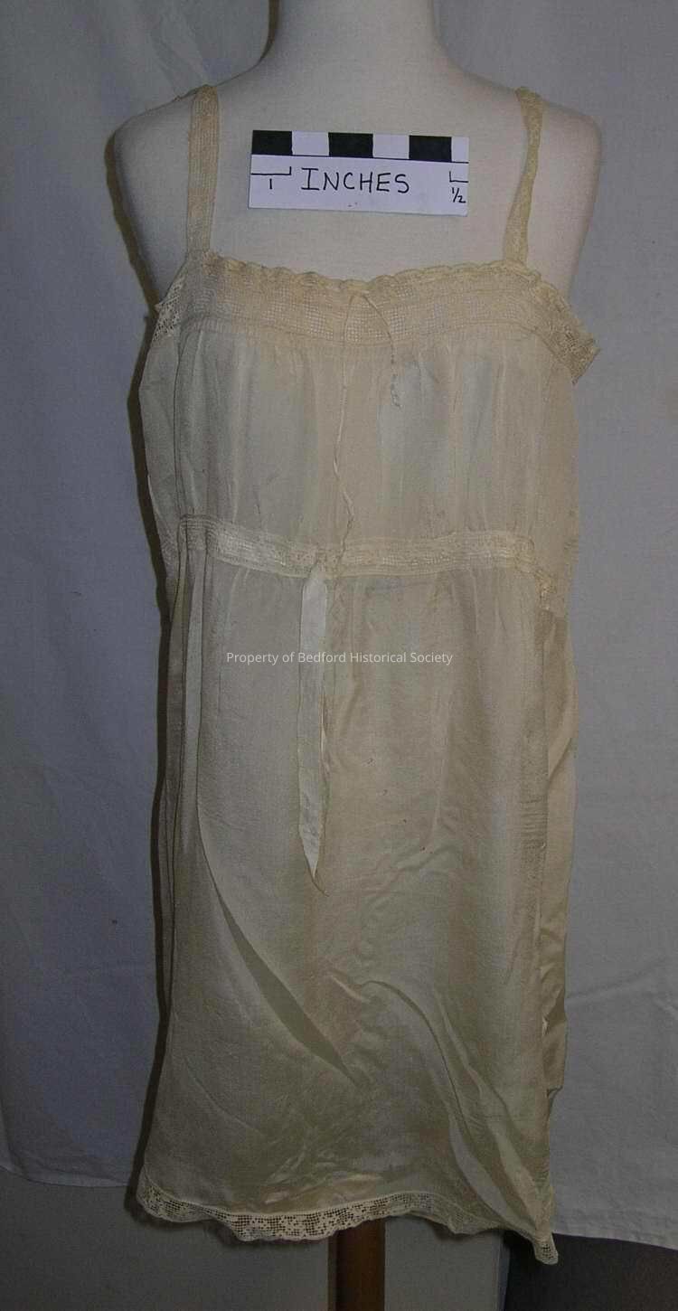 Combinaison (attached camisole and knickers) 1920s, cream silk edged with narrow bands of buratto lace, some markings.
