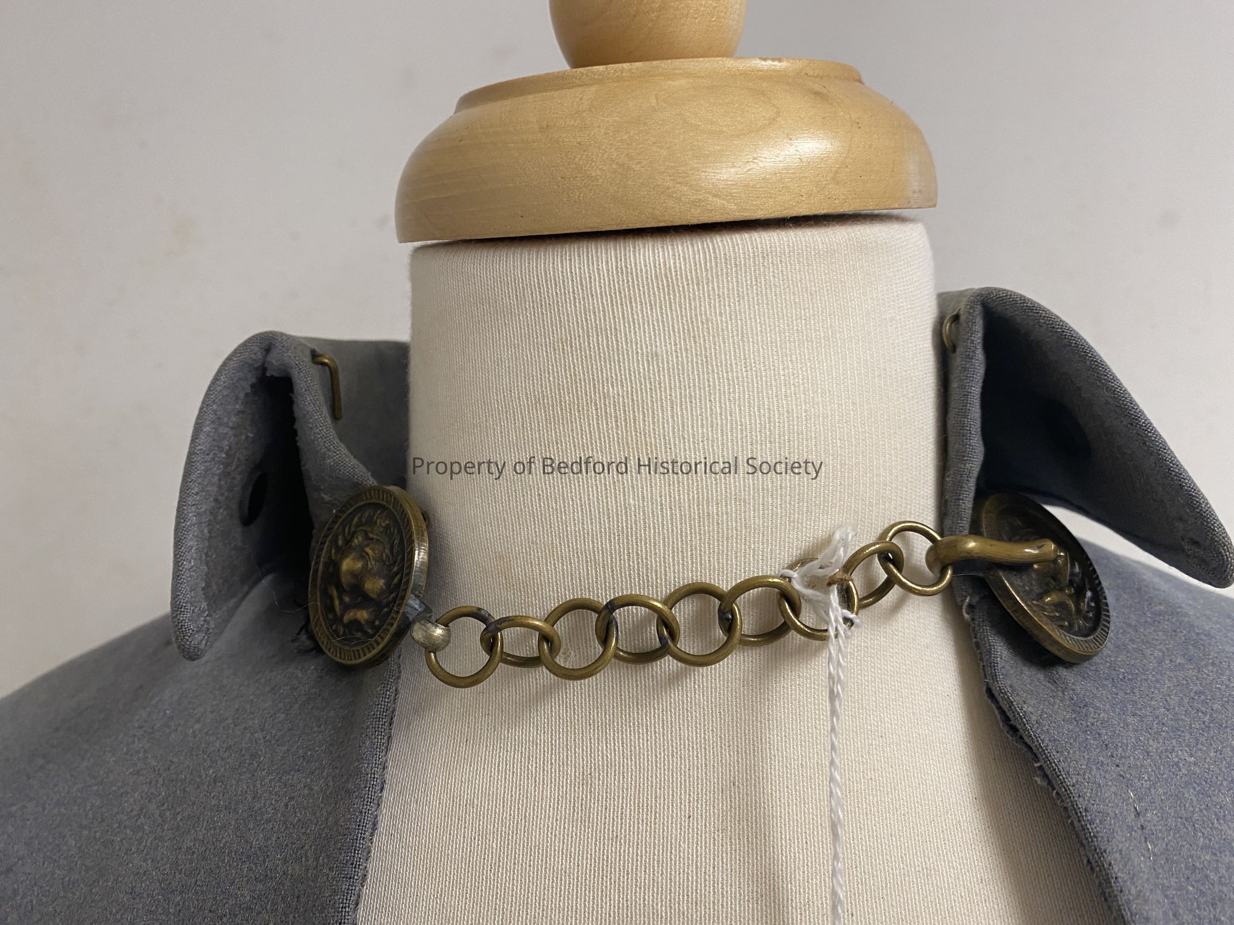 Gray wool Civil War General Confederate? Cape with brass chain and medallion clasps