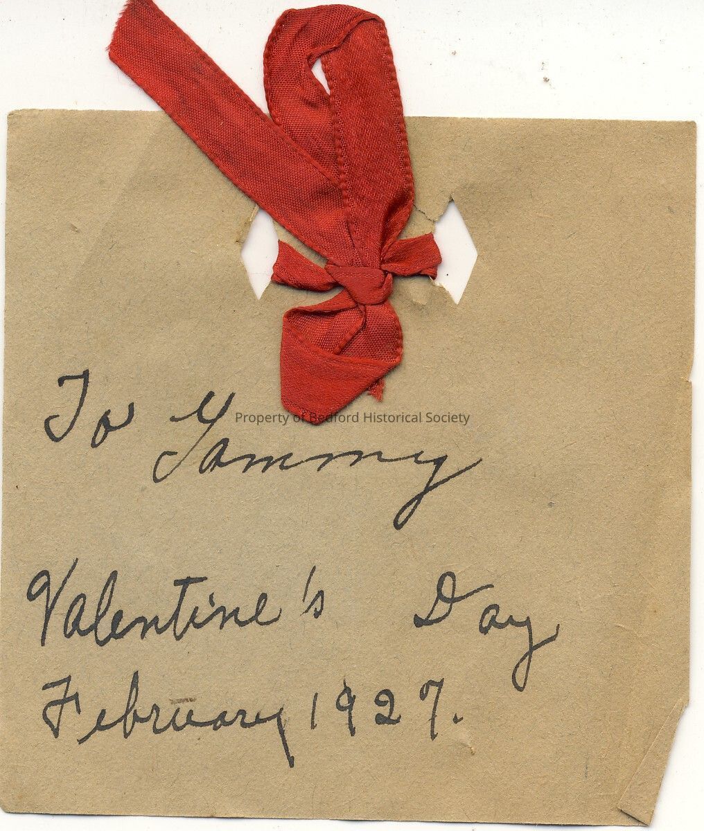 To Gammy on Valentine's Day. Red Bow, writing on the front and the back