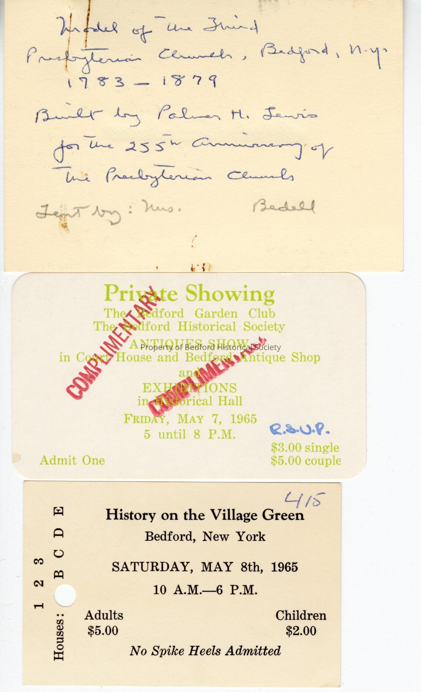 Various cards about May 8th, 1965 Garden Club and BHS event *move to vault C-1