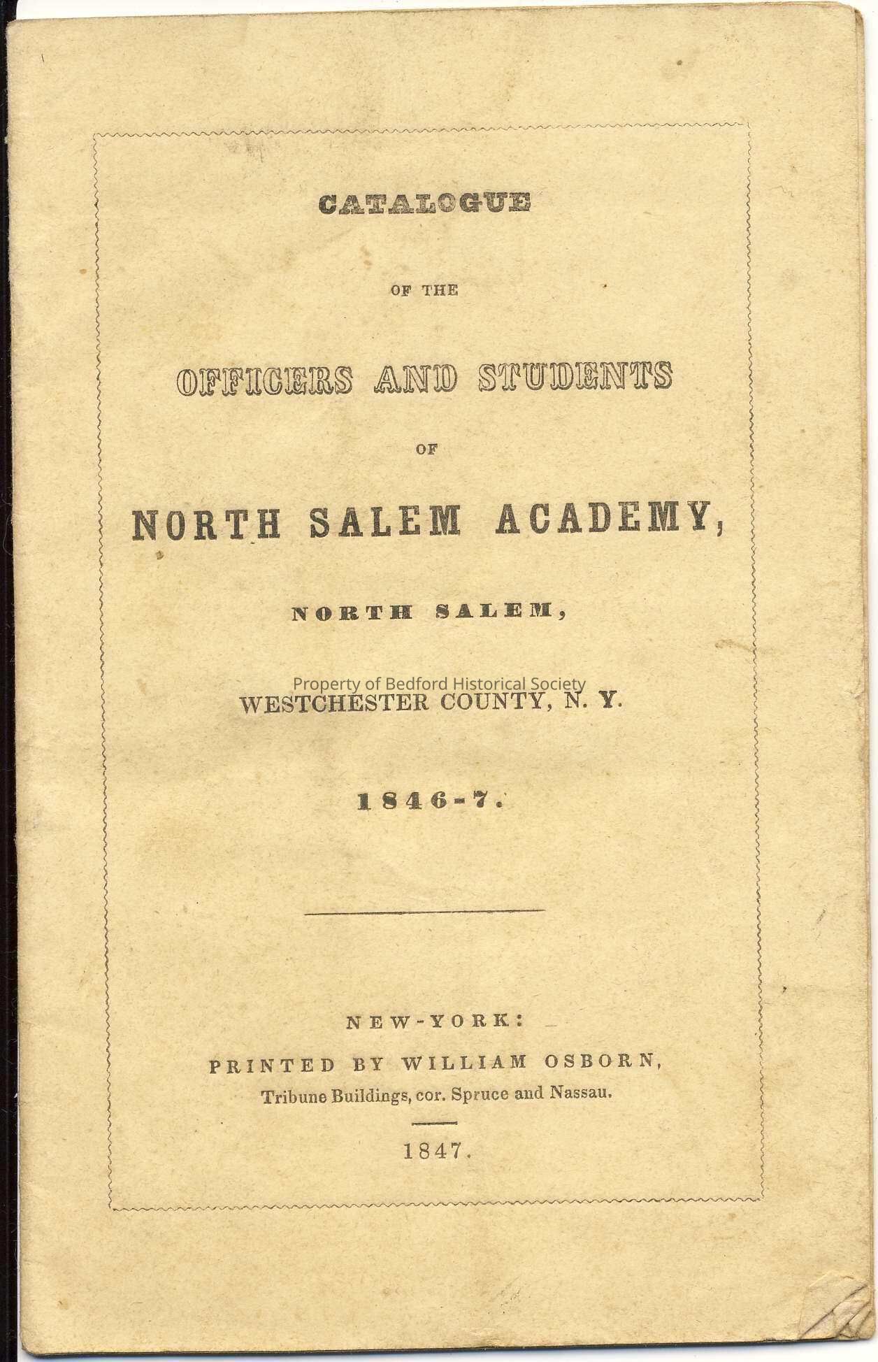 Catalogue of the Officers and Students of North Salem Academy, 1846-7 published by William Osborn, New York