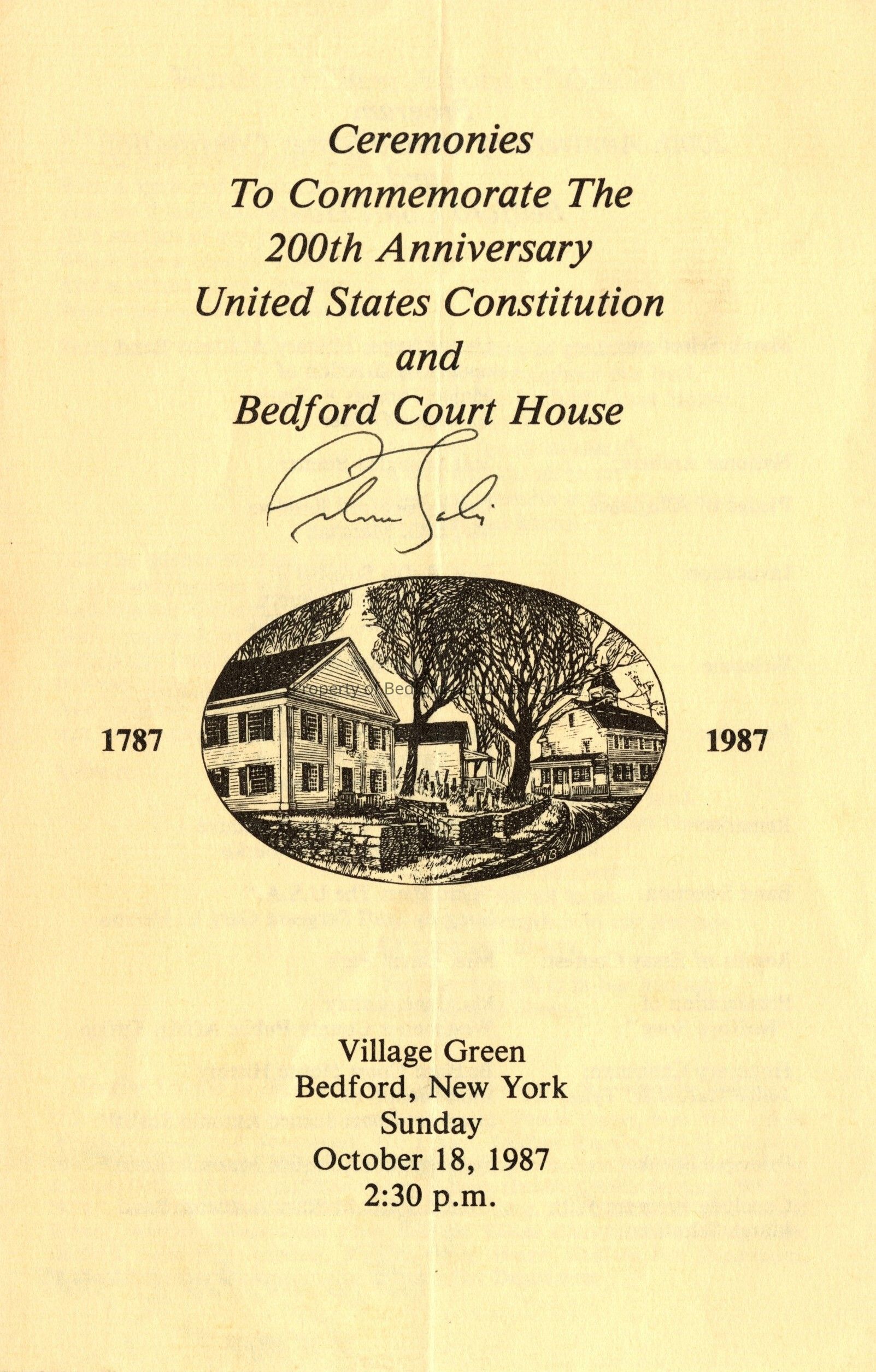 Commemorative Program of the 200th Anniversary of the United States Constitution and the Bedford Court House. It is signed on the front by Supreme Court Judge Antonin Scalia who was the principal speaker