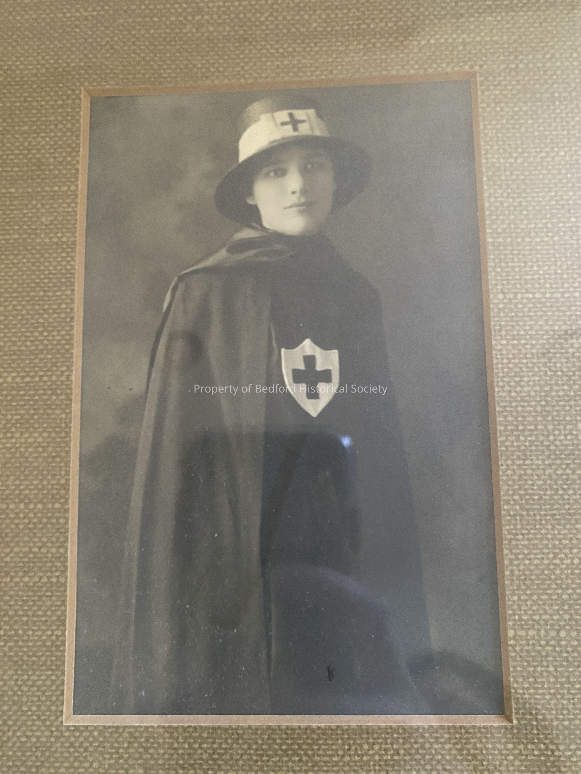 Frame featuring three photos of Wilhelmina Kirby in various WW1 Red Cross nurse uniforms, with three certificates.