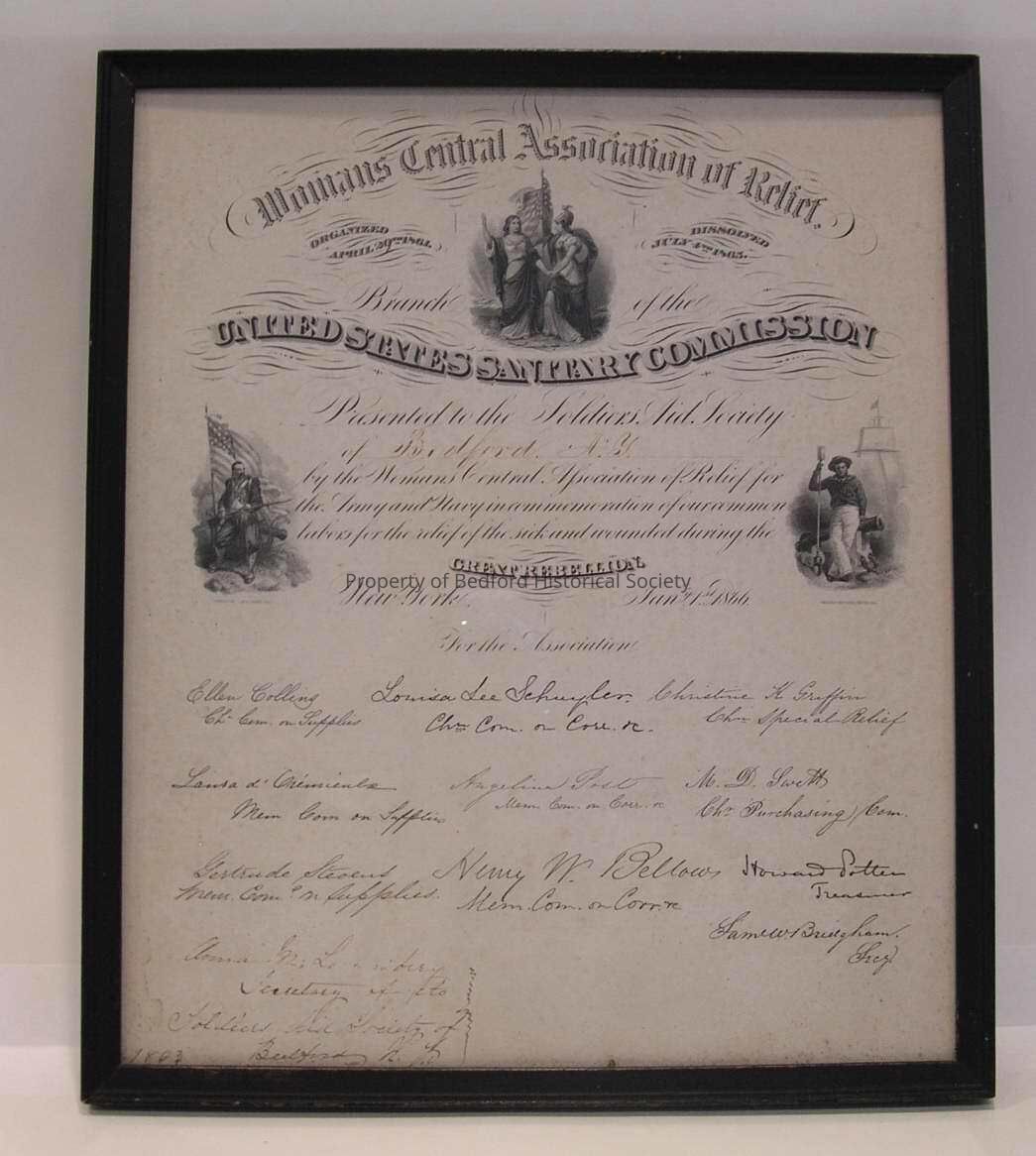 Certificate: Women's Central Association of Relief in the United States Sanitary Commission: 1861-1865