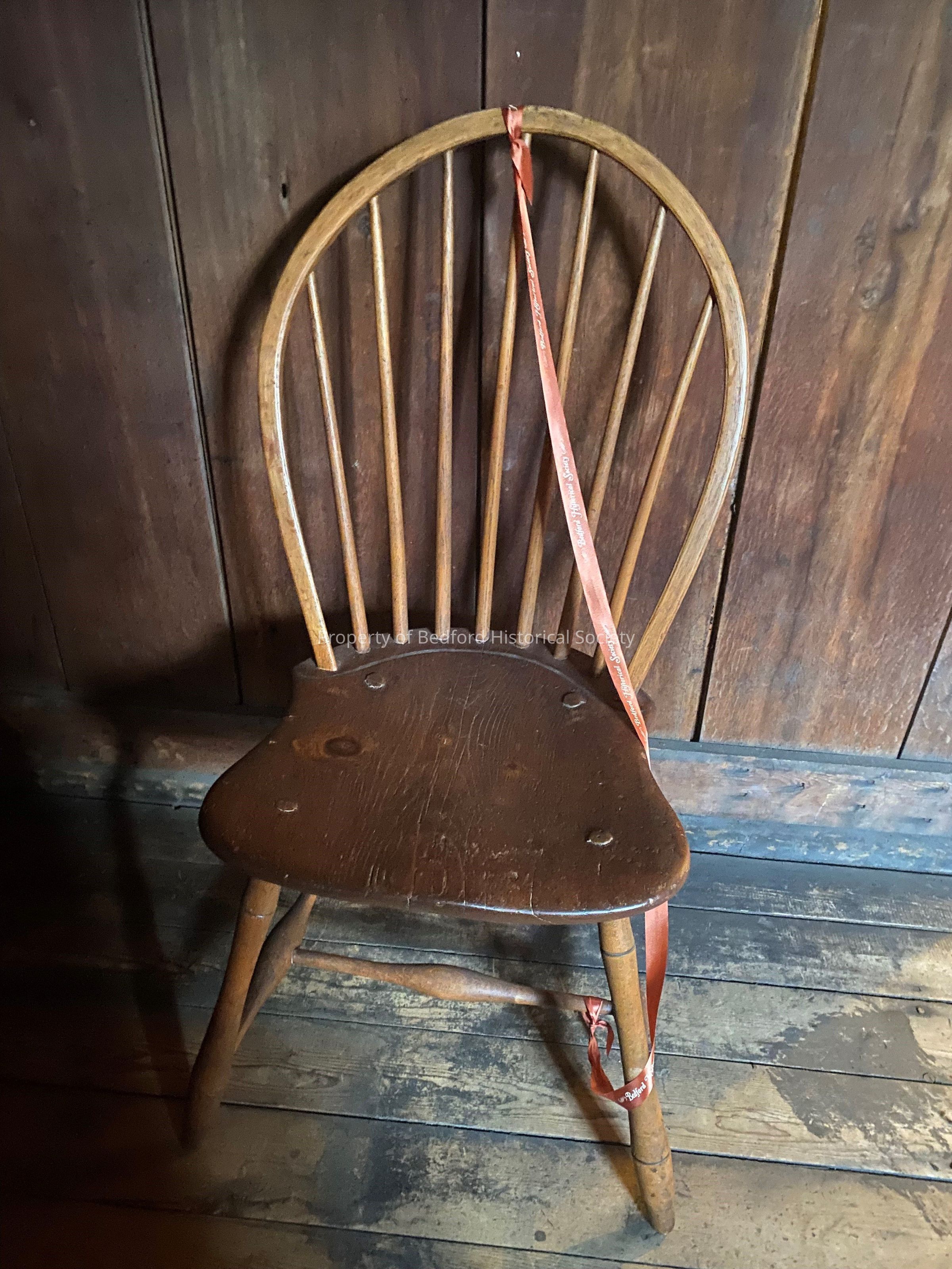 pine? Windsor style chair. Seven spindle back, pine seat, bamboo legs, natural finish. Some restoration. Early 19th century.