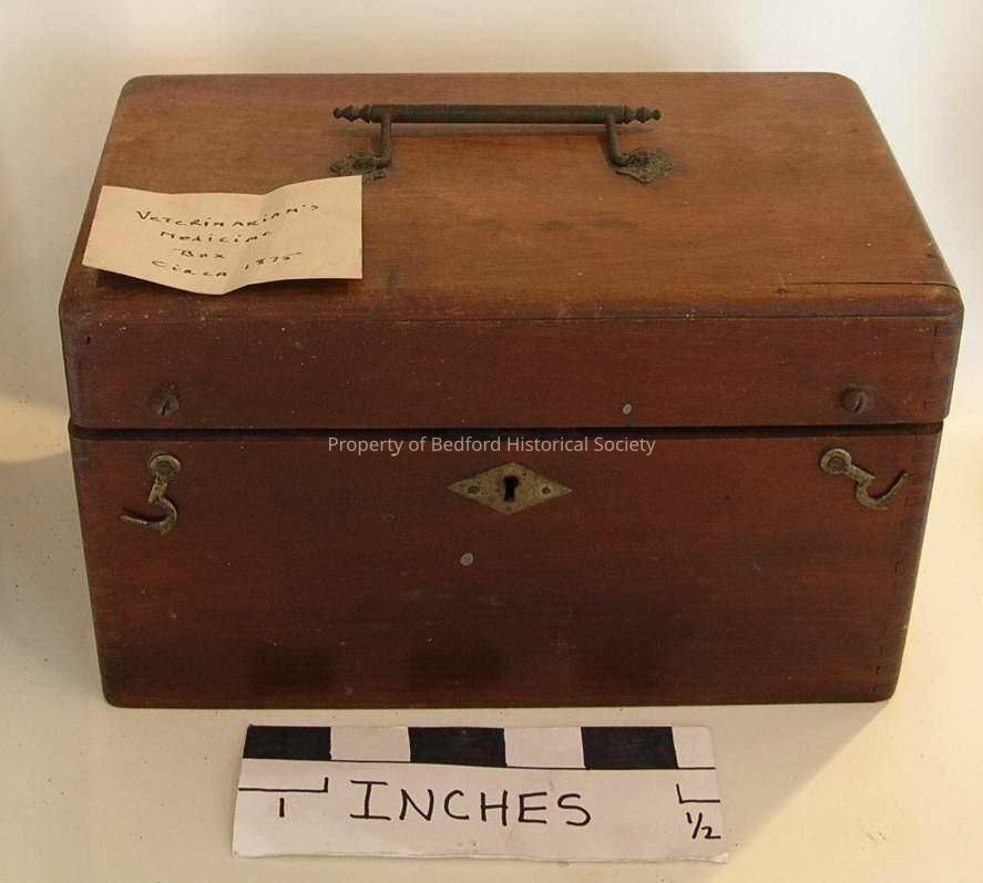 Veterinarian's box containing medicine bottles and "Humphrey's Veterinary Specifics" 1888 Belonged to George Carpenter
