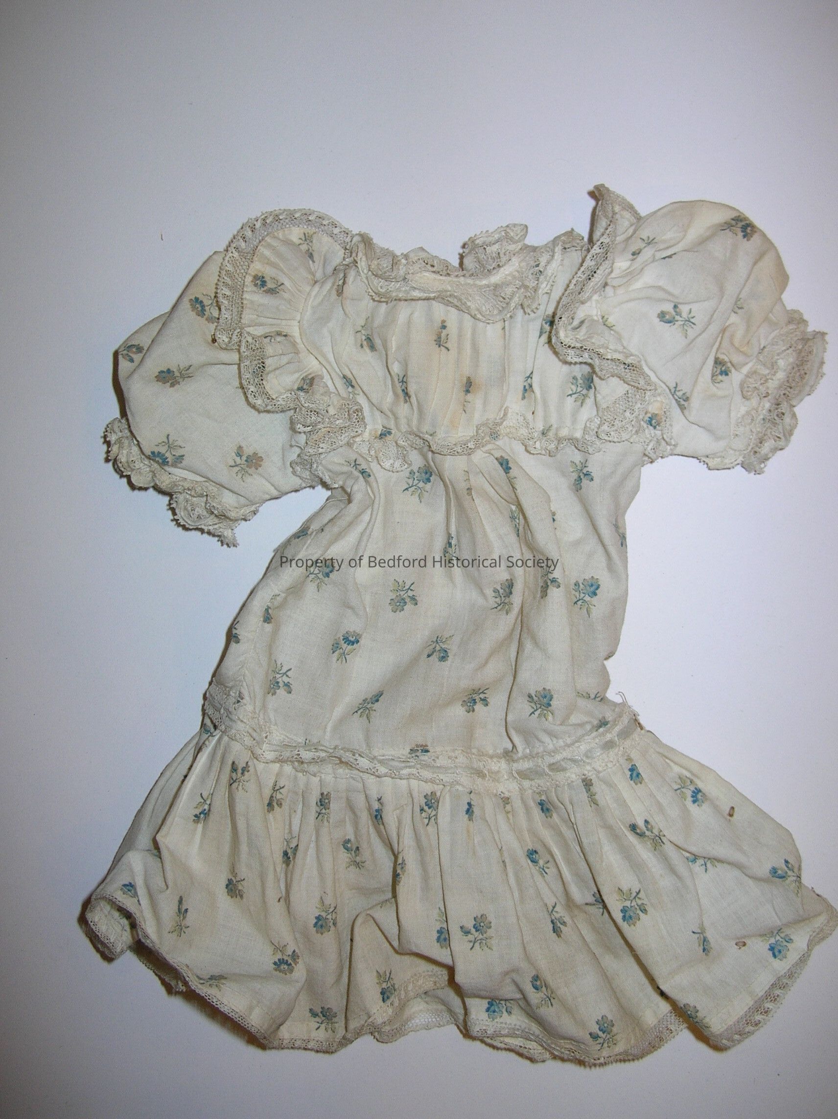 Doll Clothing. Linen flower print short sleeve dress with lace and pleated trim