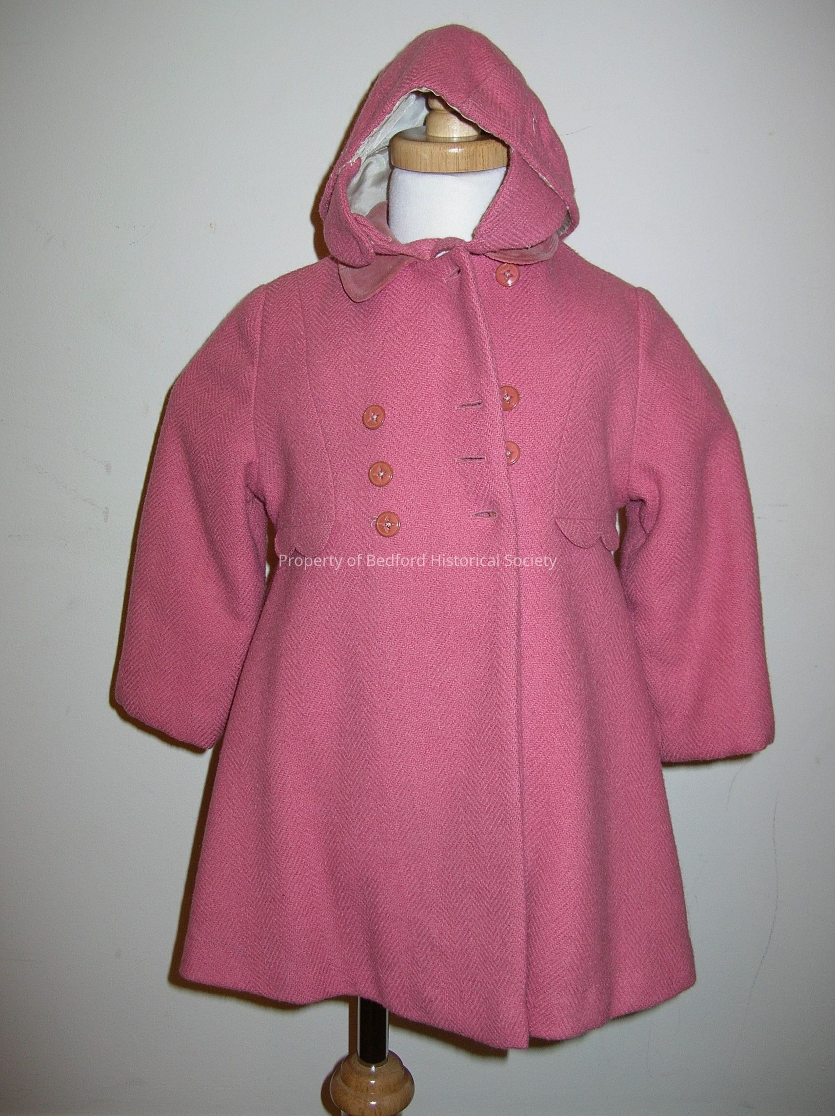 Three piece pink children's wool outfit: jacket, pants, hat. B. Altman & Co.