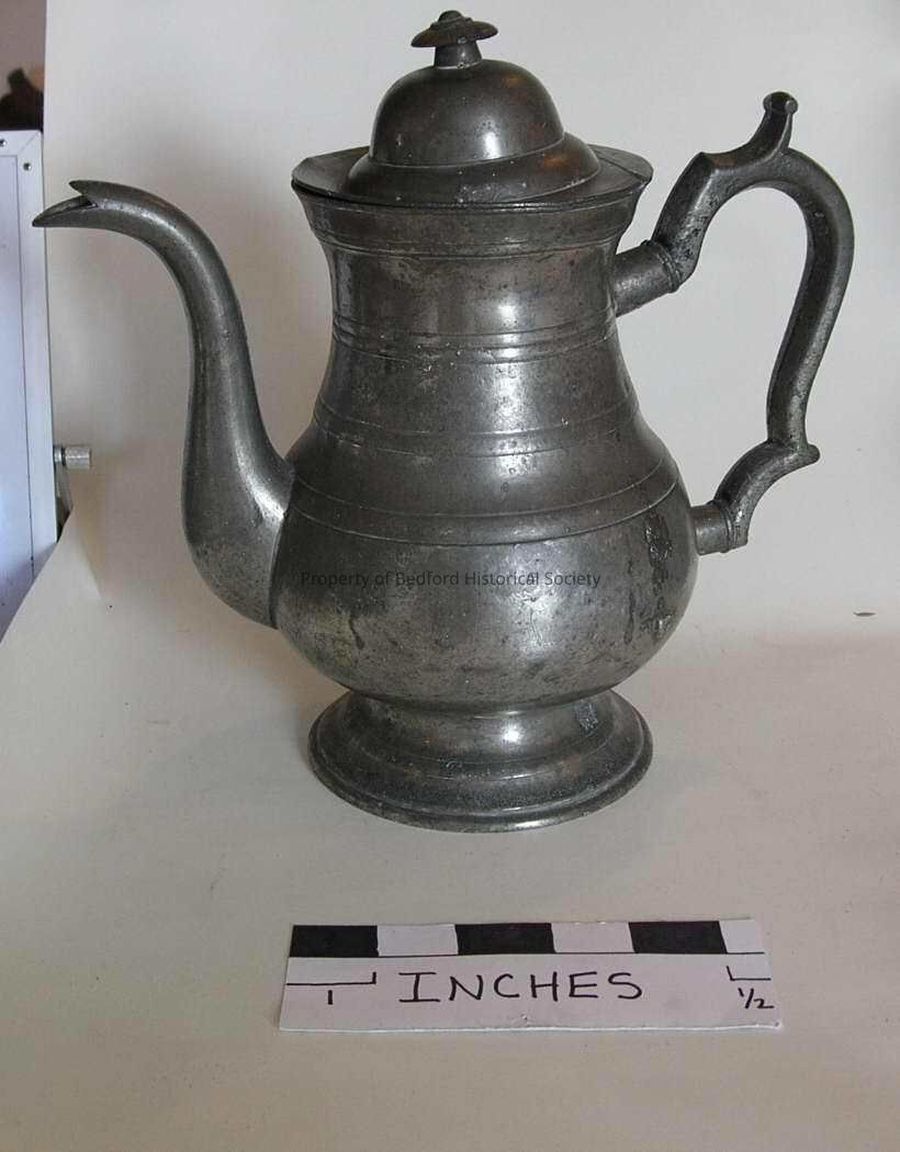 Pewter Coffee Pot, Griswold--3 Eagles, American, plain S. spout, shaped handle, simple shaped base