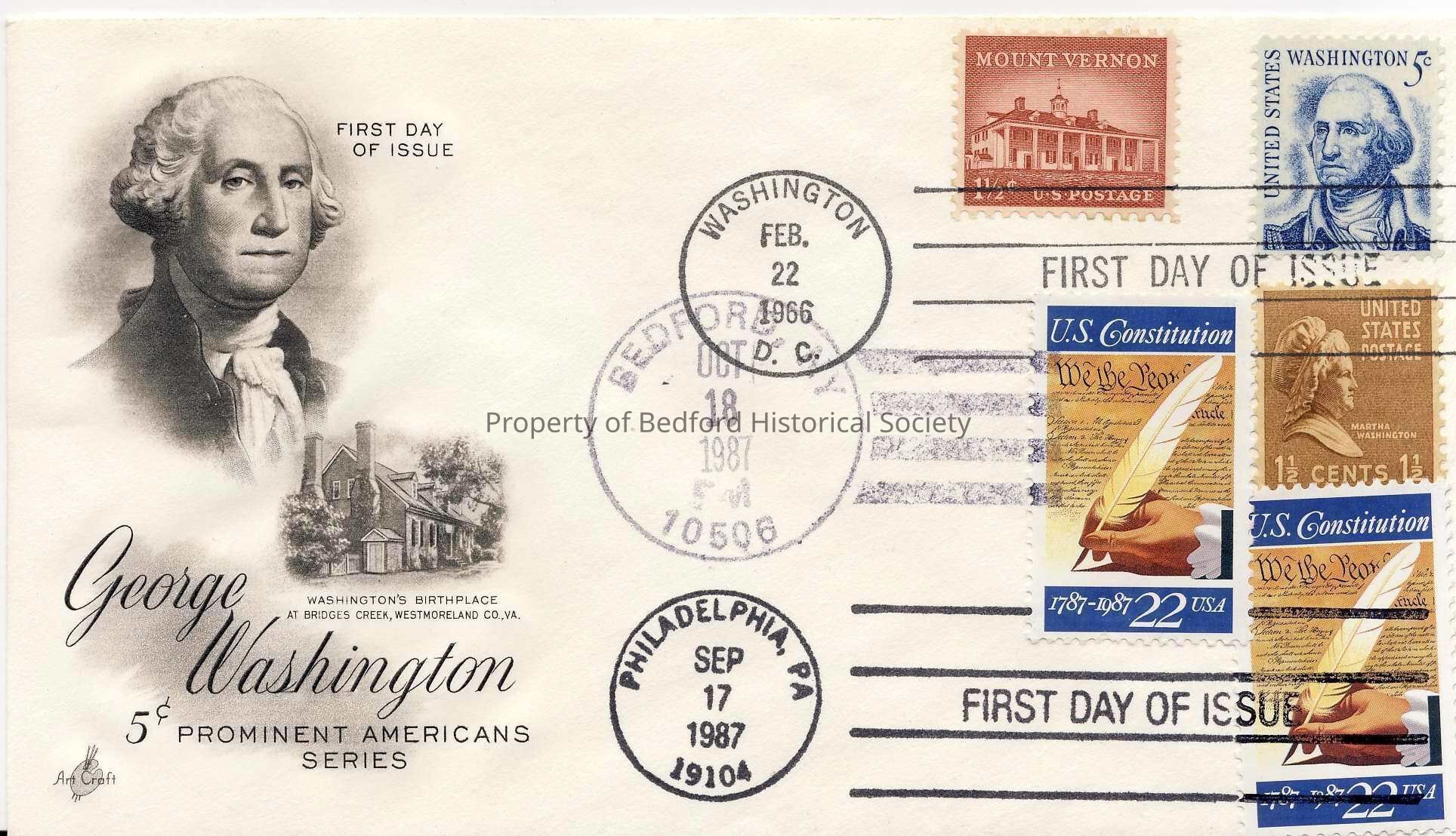 Commemorative stamped envelope with George Washington, 1966-1987