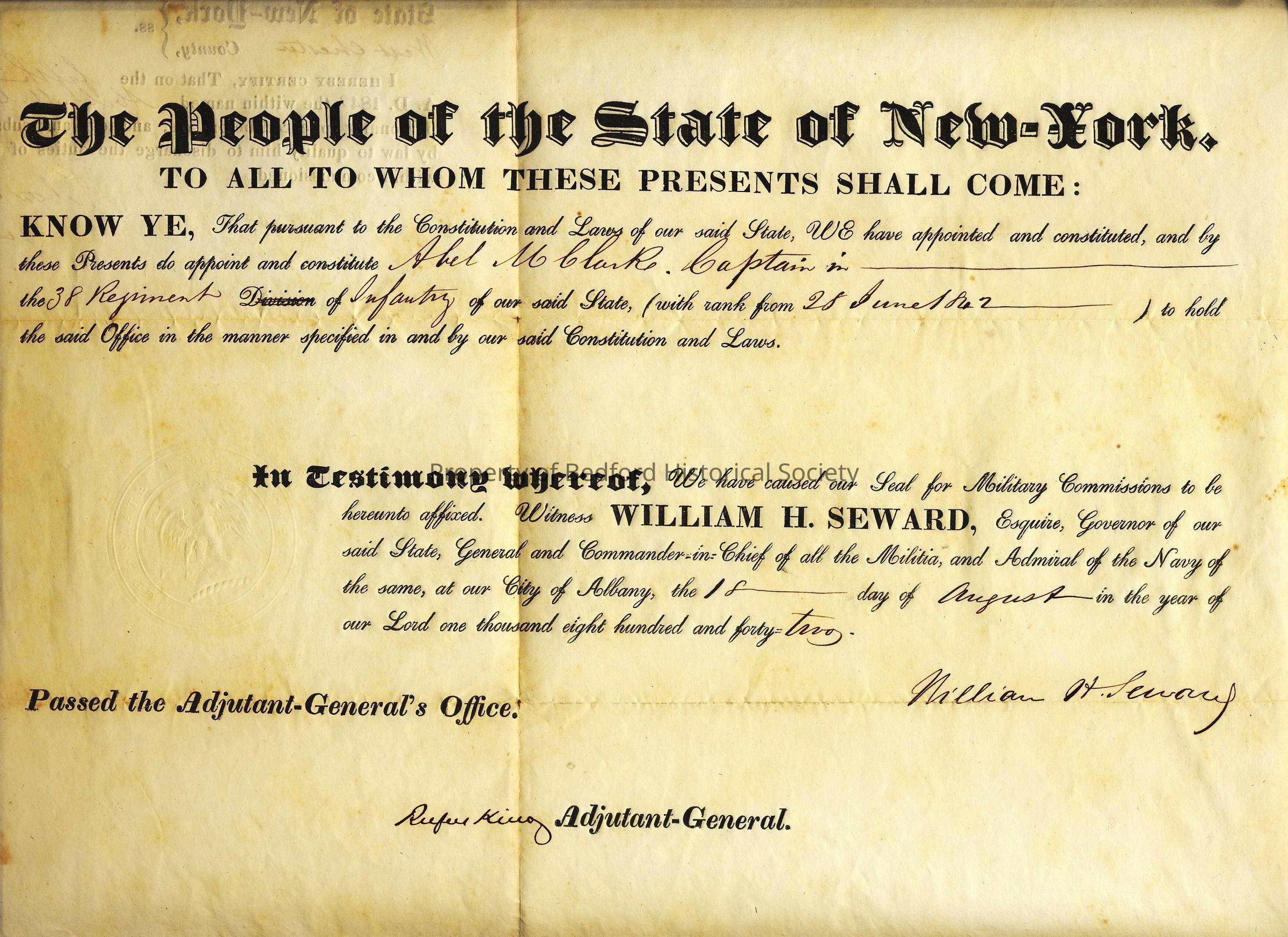 Commission as Captain for Abel M. Clark in the State Militia, 1842 *transcription in Transcriptions Binder