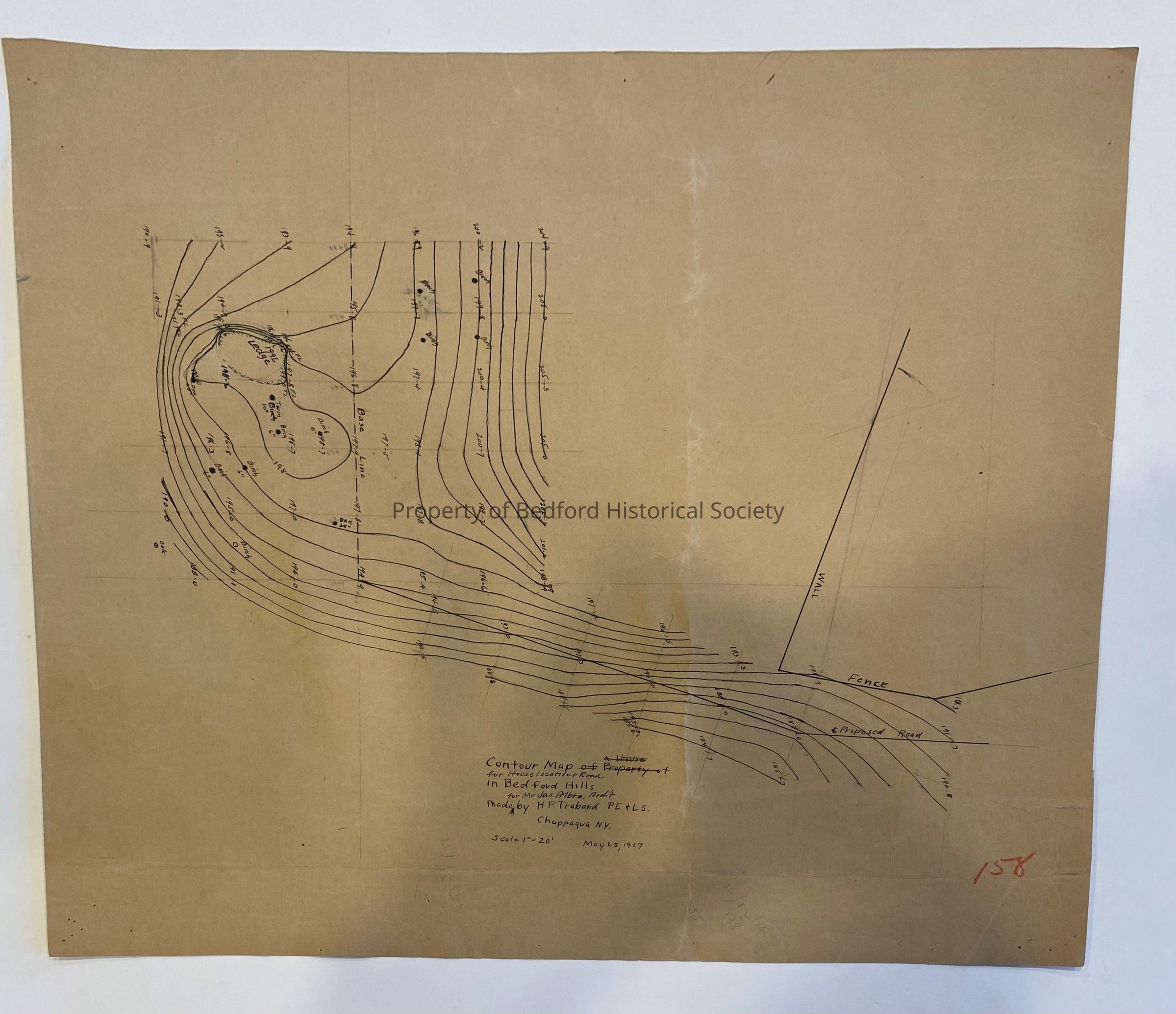 Contour Map for House Location & Road in Bedford Hills for Mr. Jas. Albro, 1927