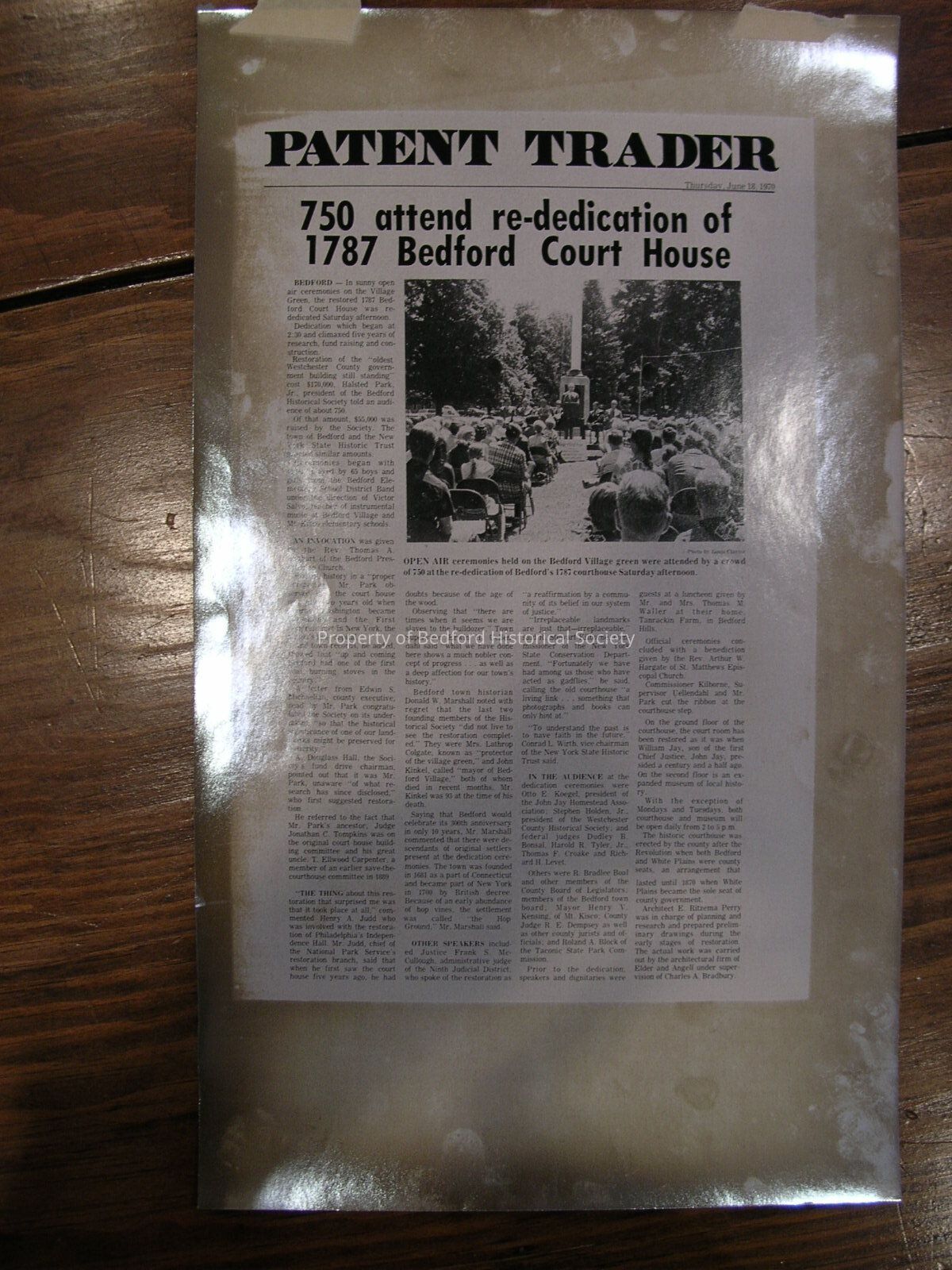 Copy of a newspaper article- Court House dedication ceremony in Village Green, 1970.