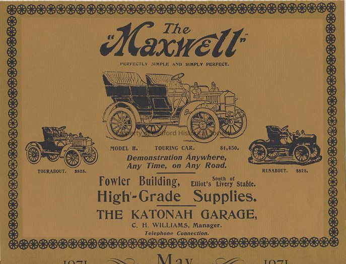Copy of newspaper ad for The Maxwell (cars). On yellow paper