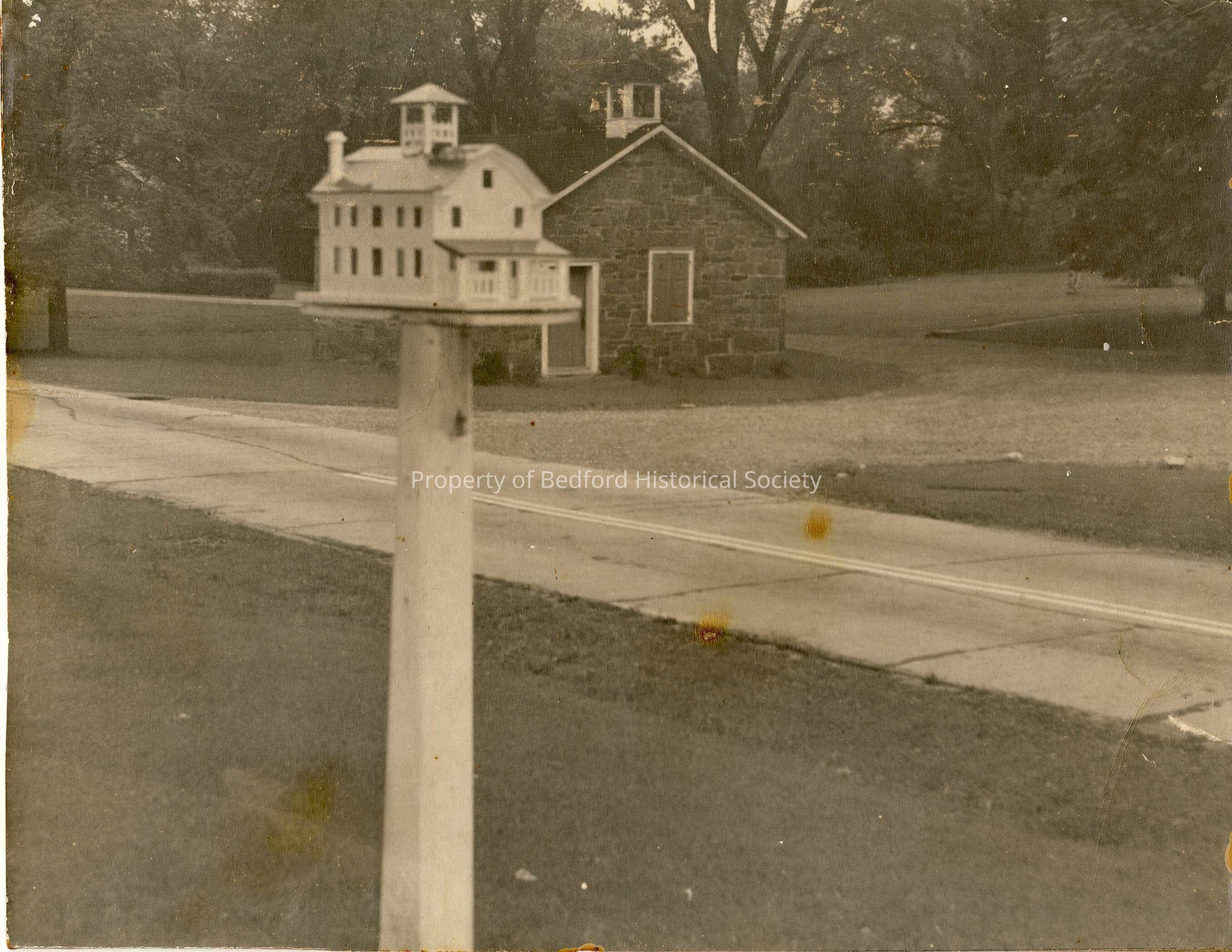 Photo of model of Court House on post on Village Green Model made by Leon W. Sloat