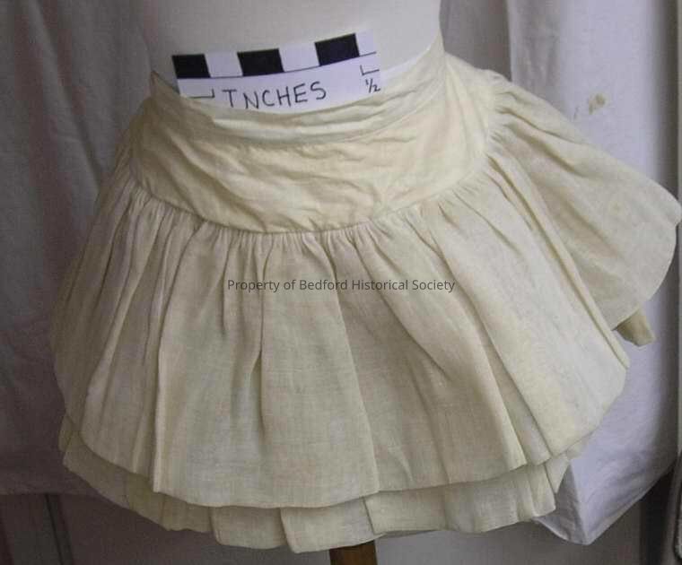 Cotton buckram double flounce "crinoline" for holding out a skirt, circa 1950, fastens with a sliding brass mechanism, label: Hoops! My Dear! By I. and M. Company, very good condition