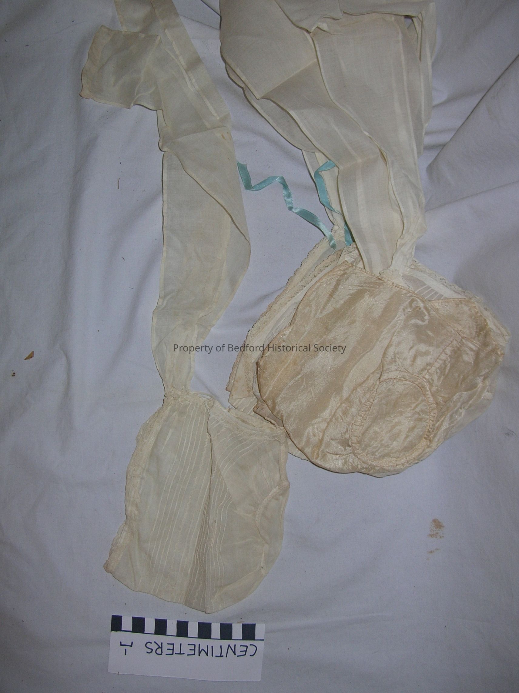 Set of 9 embroidered white bonnets with neckties