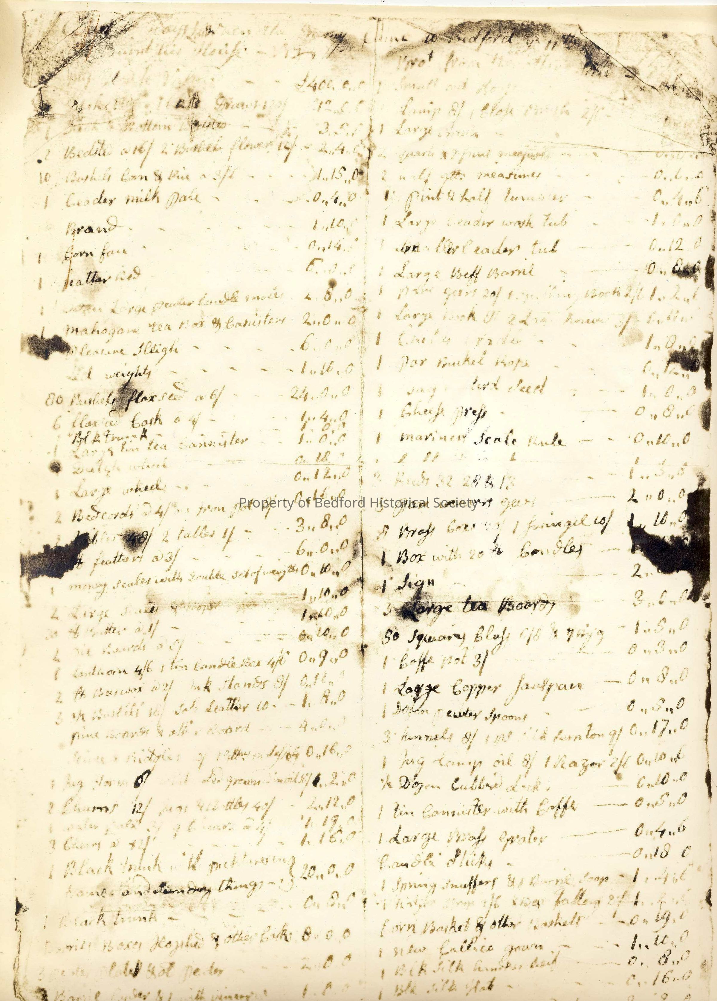 David Hays: Inventory of losses when store and home were burned July 11, 1779, file includes transcription
