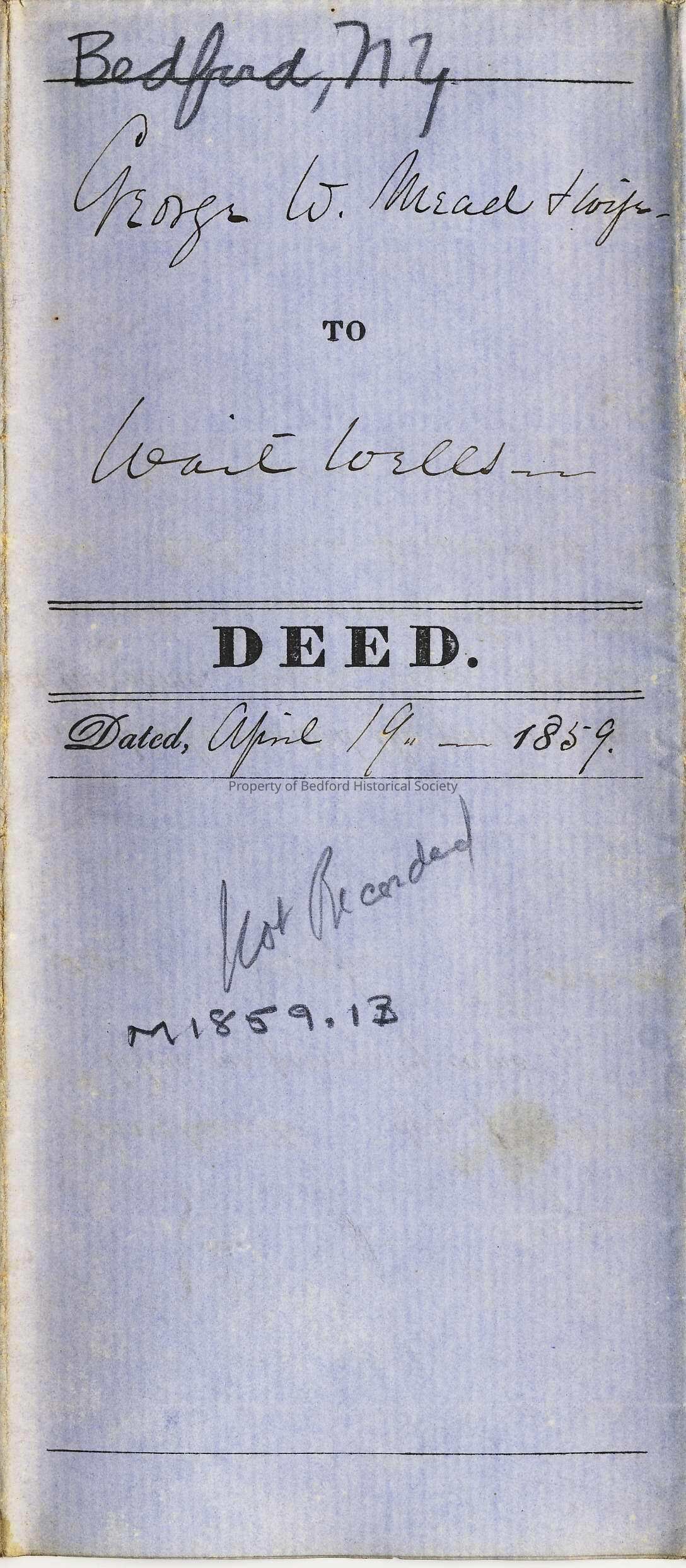 Deed: George W. Mead to Wait Wells, 1859