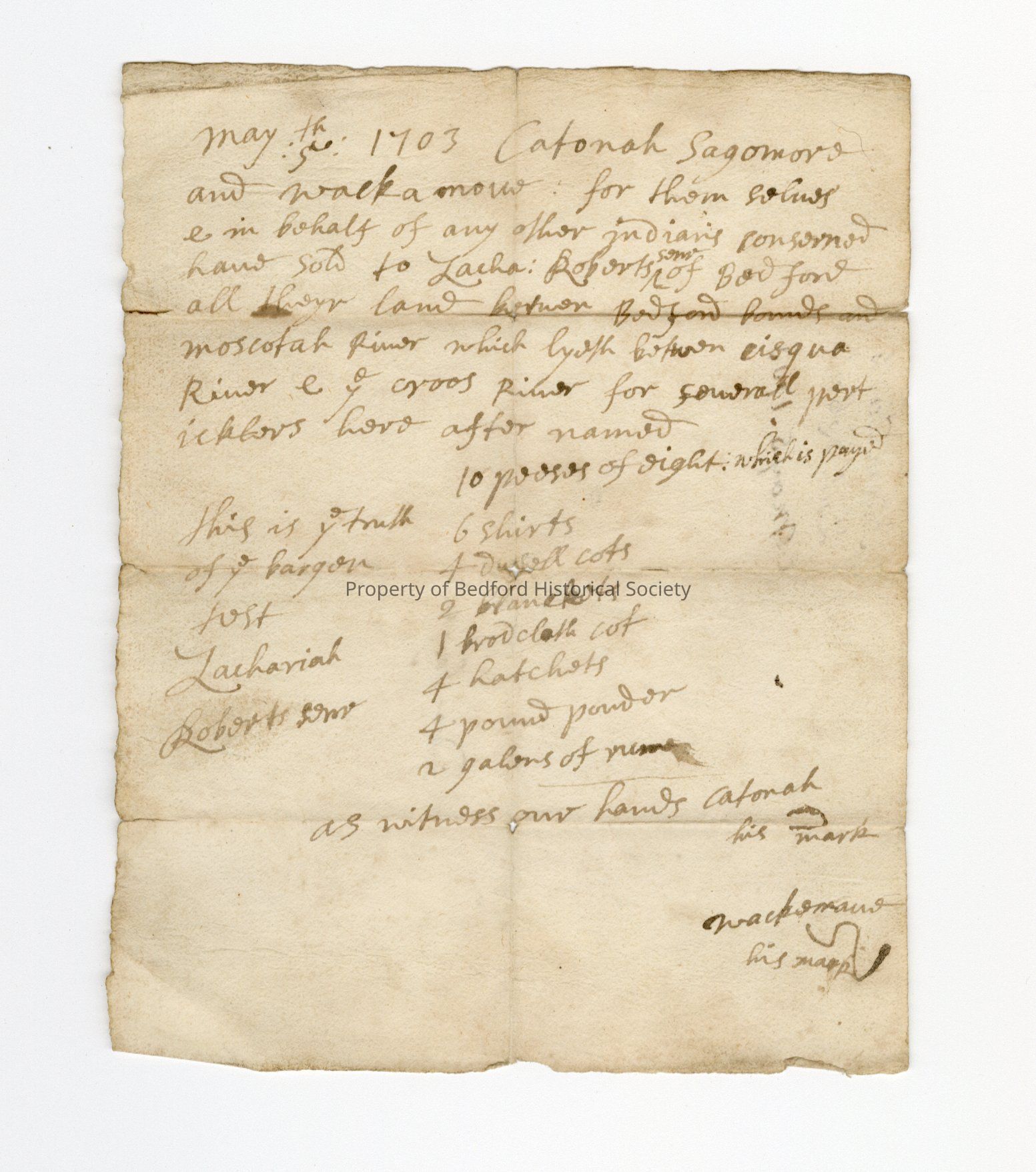 Deed of Sale to Zachariah Roberts, 1703