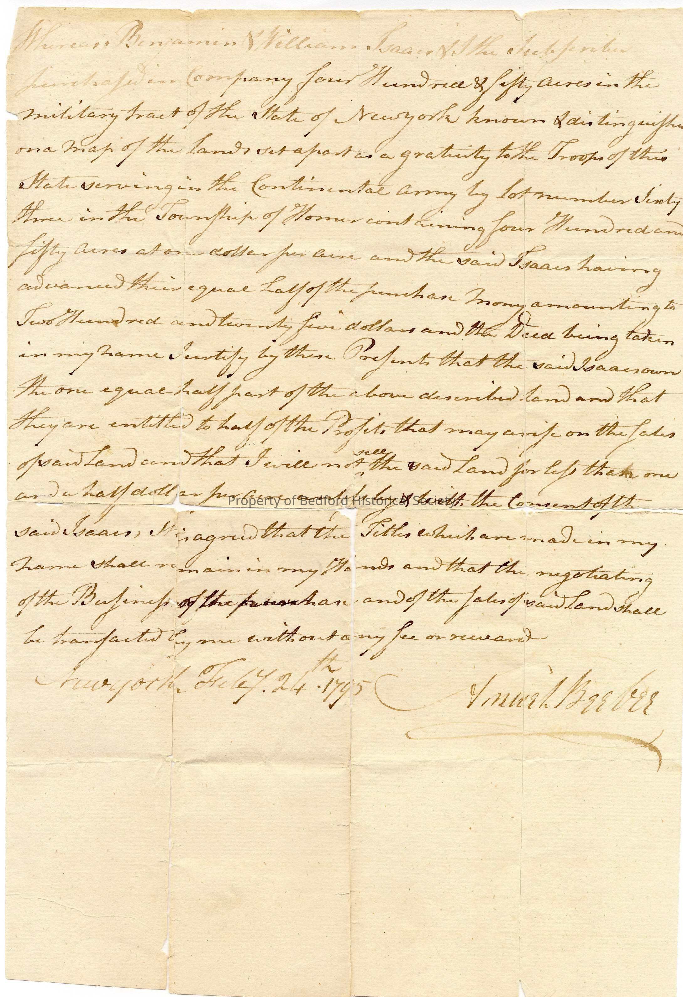 Document referring to Benjamin and William Isaacs and the Continental Army with regard to a land grant, dated 1795Entry/Object ID