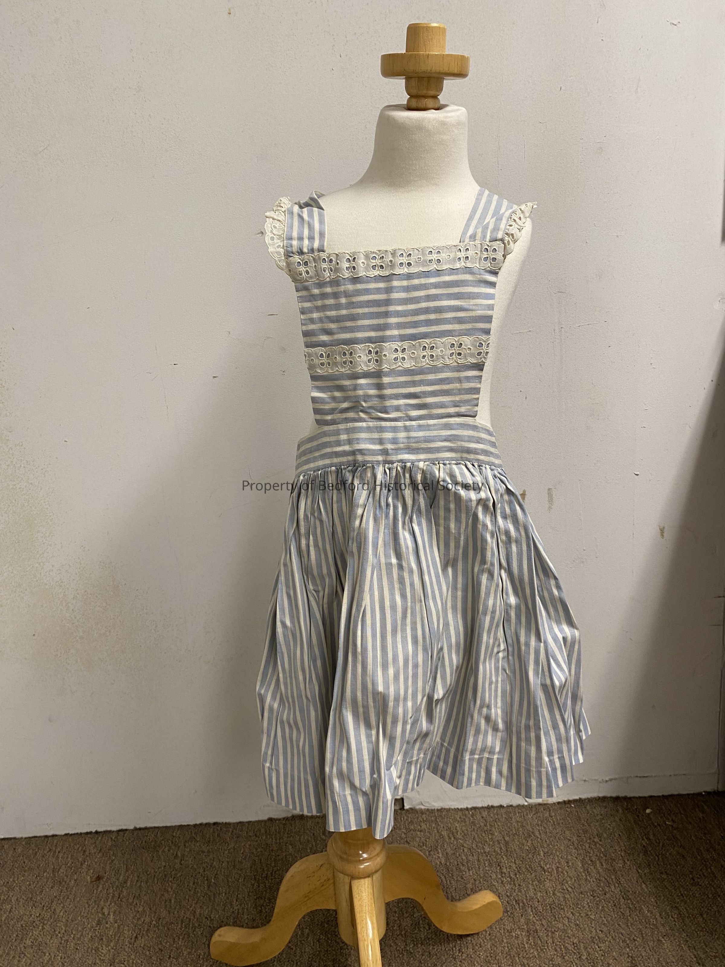light blue and white child's gingham pinafore dress. Belonged to Steffie or Annie. (larger size of 2010.3.60)
