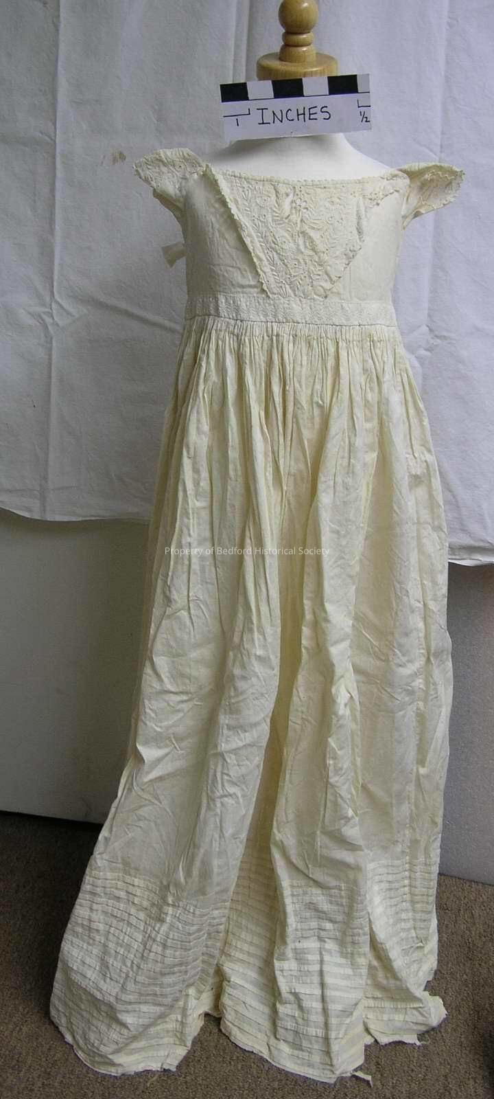 Long baby dress with triangular bib front, mid 19th cenutry, ripped in half.