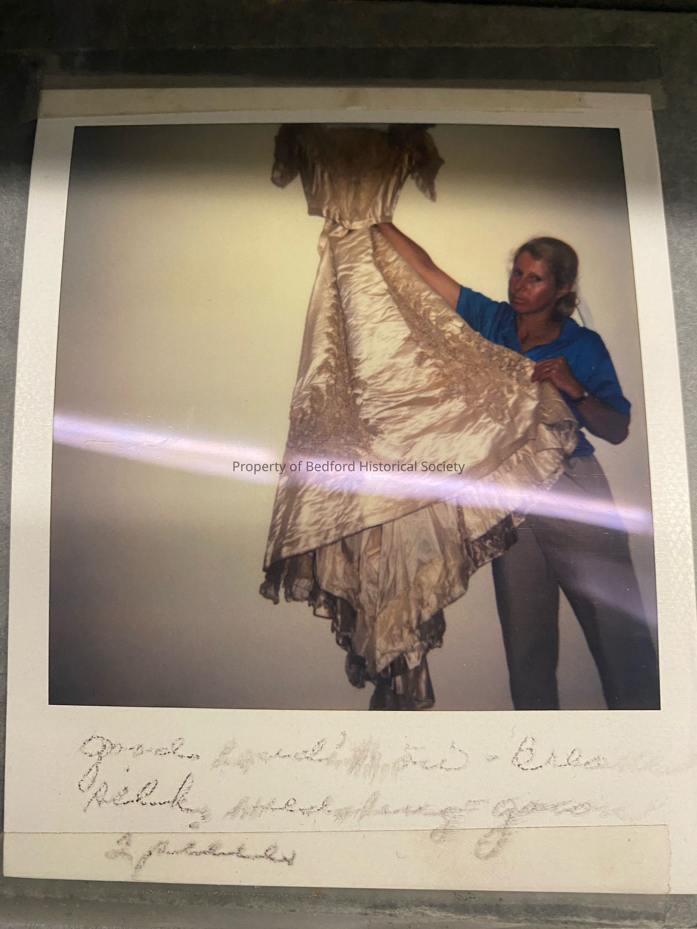 Silk and lace two piece wedding gown with label “ C.Joyeuse, 44 rue de Colisee, Paris”.