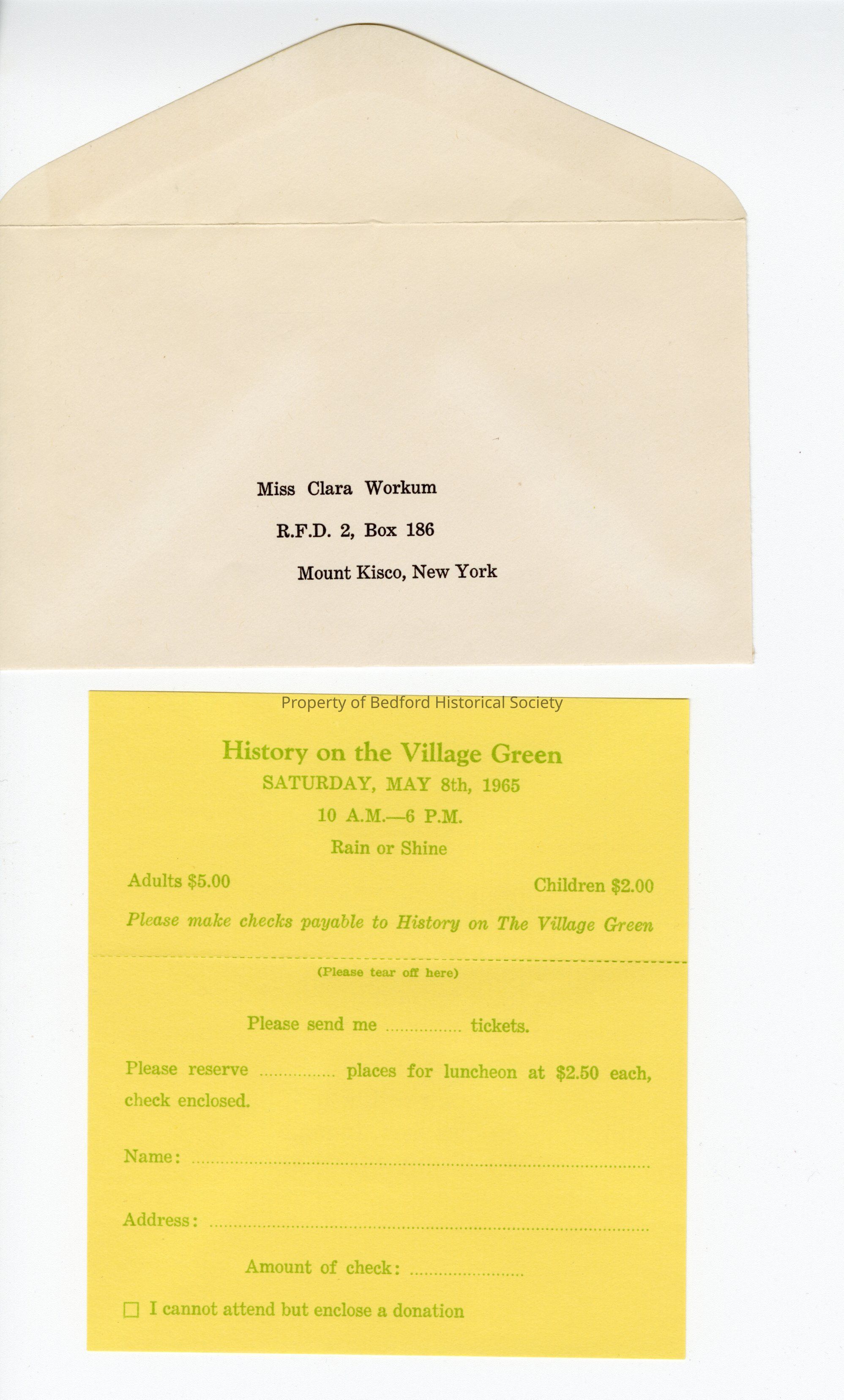 Envelope and RSVP Card for History on the Village Green Event