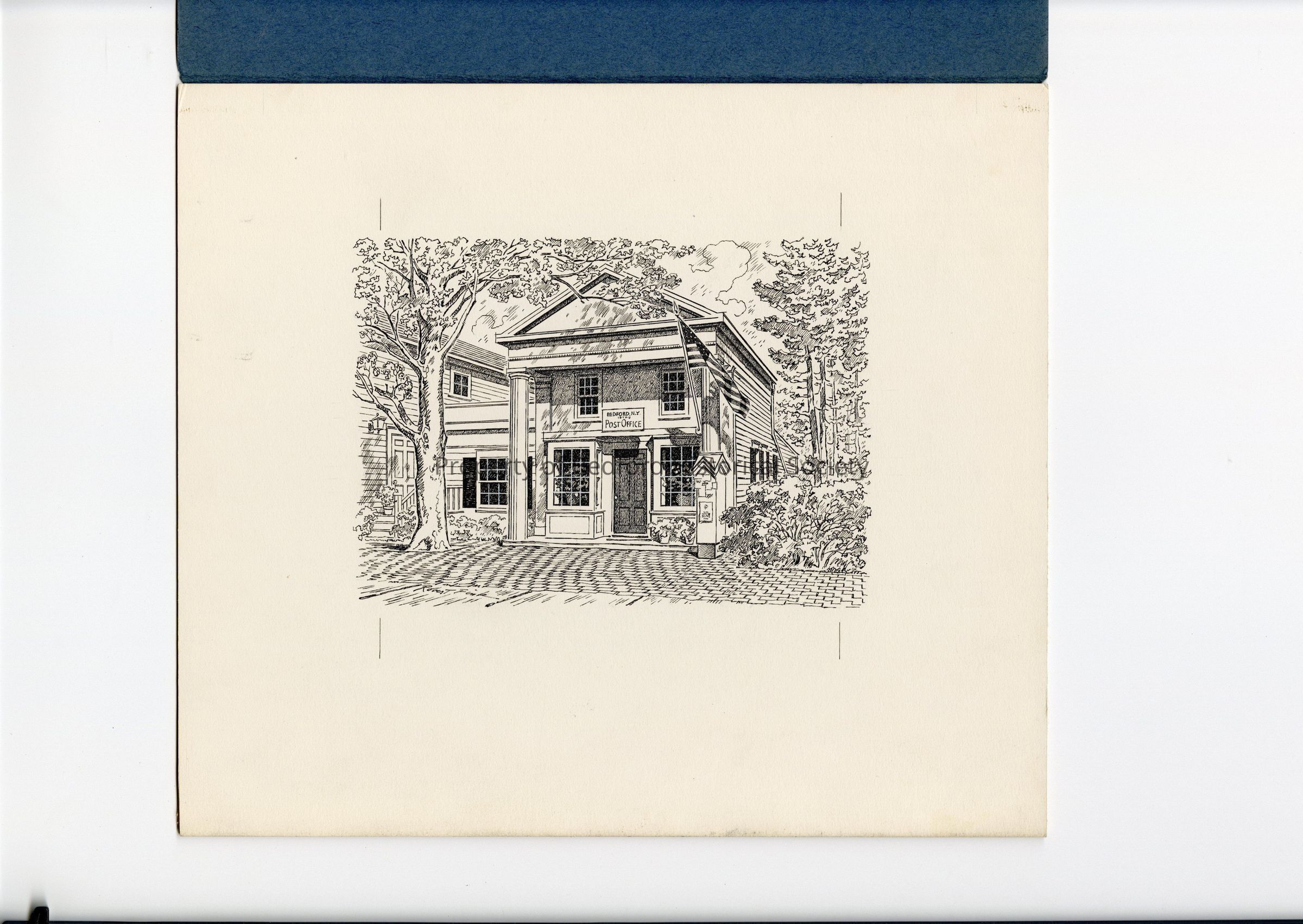 original drawing of Post Office by Robert Fink later uses for Bedford merchandise, 1980?