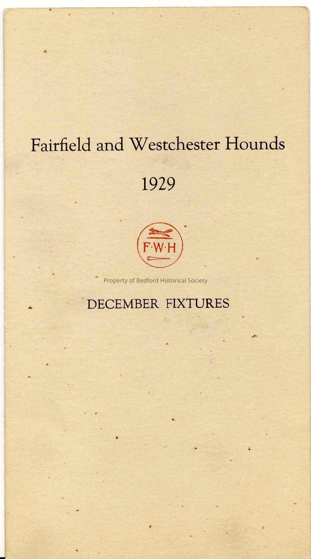 Fairfield and Westchester Hounds, 1929, December Fixtures
