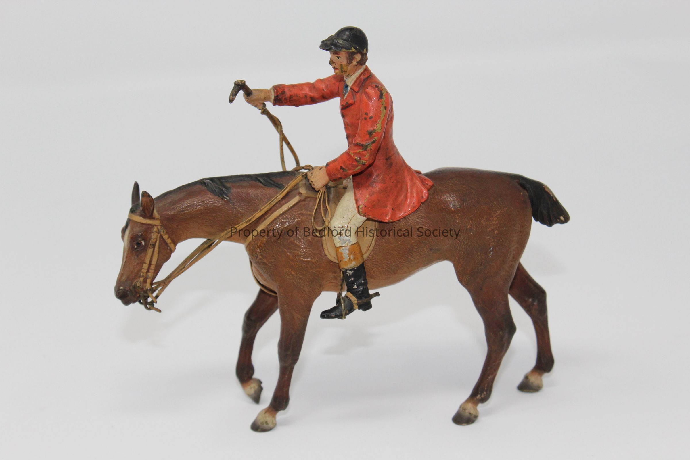 A cold painted Franz Bergman--Vienna bronze figure of English hunter (horse) and jockey. Early 20th Century, 5 1/2" long.