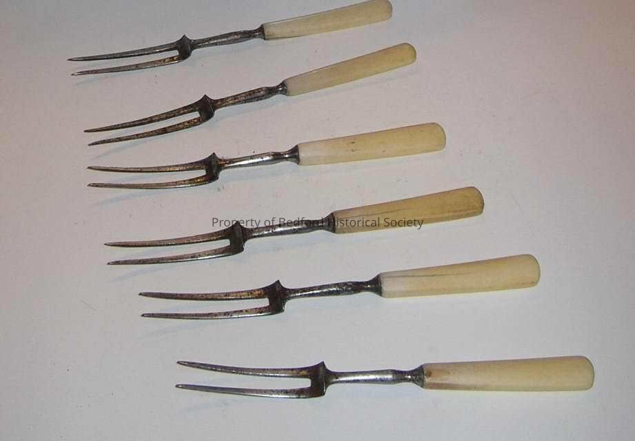 6 Two pronged forks with bone handles (A-F)