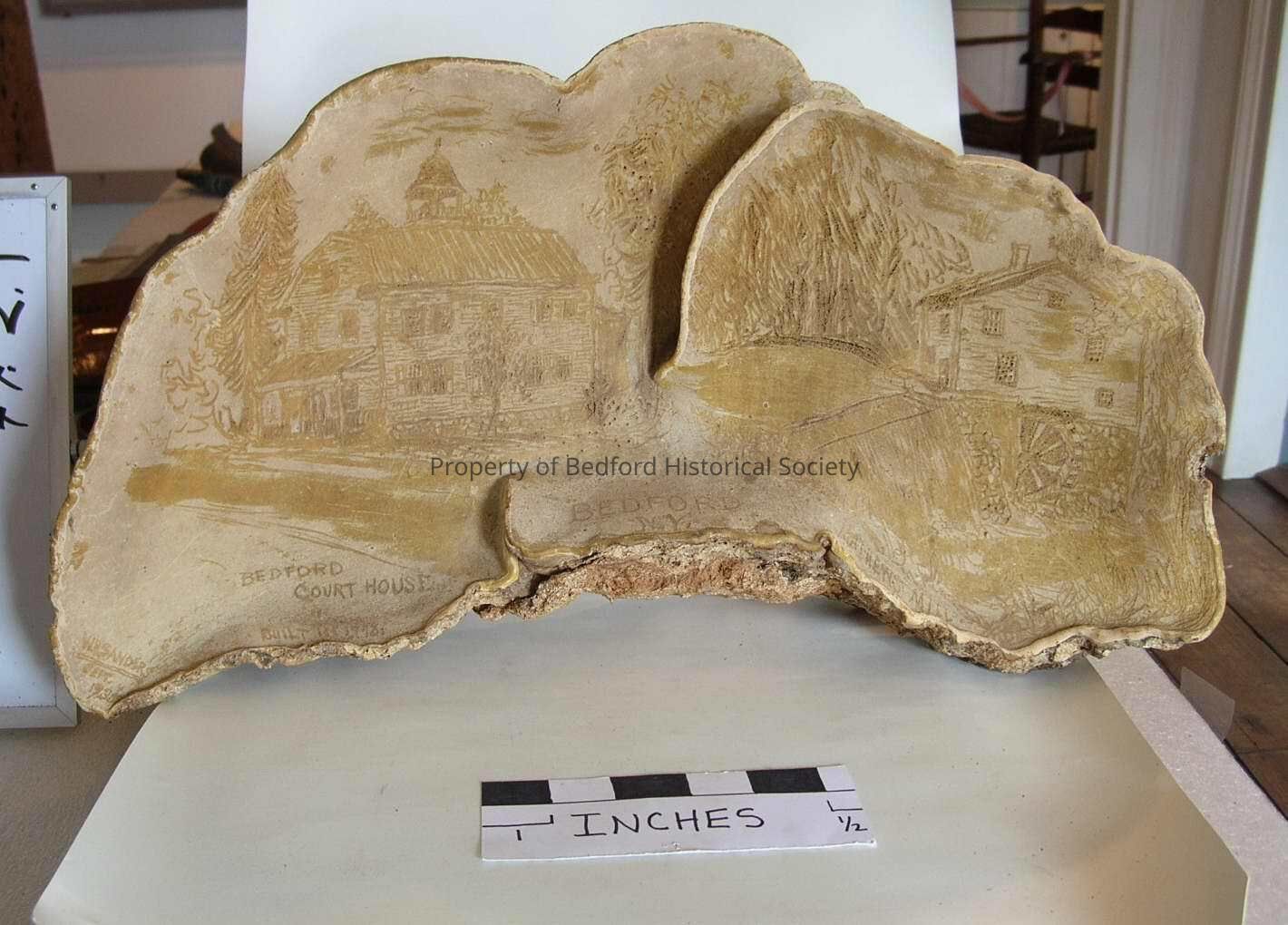 Etched turkey fungus with scene of Court House and Matthew's Mill