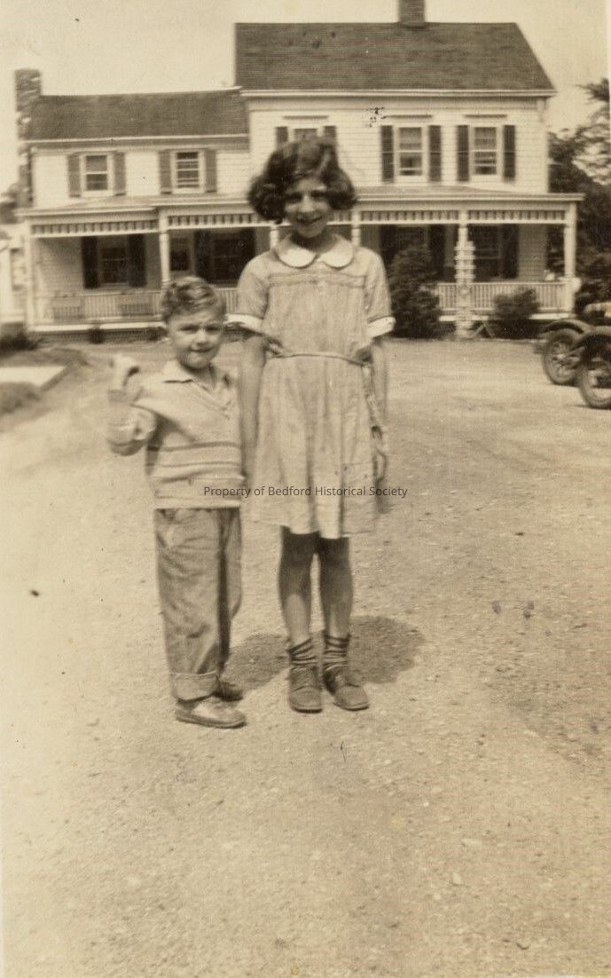 Gerri Glasser and brother in front of Glasser home