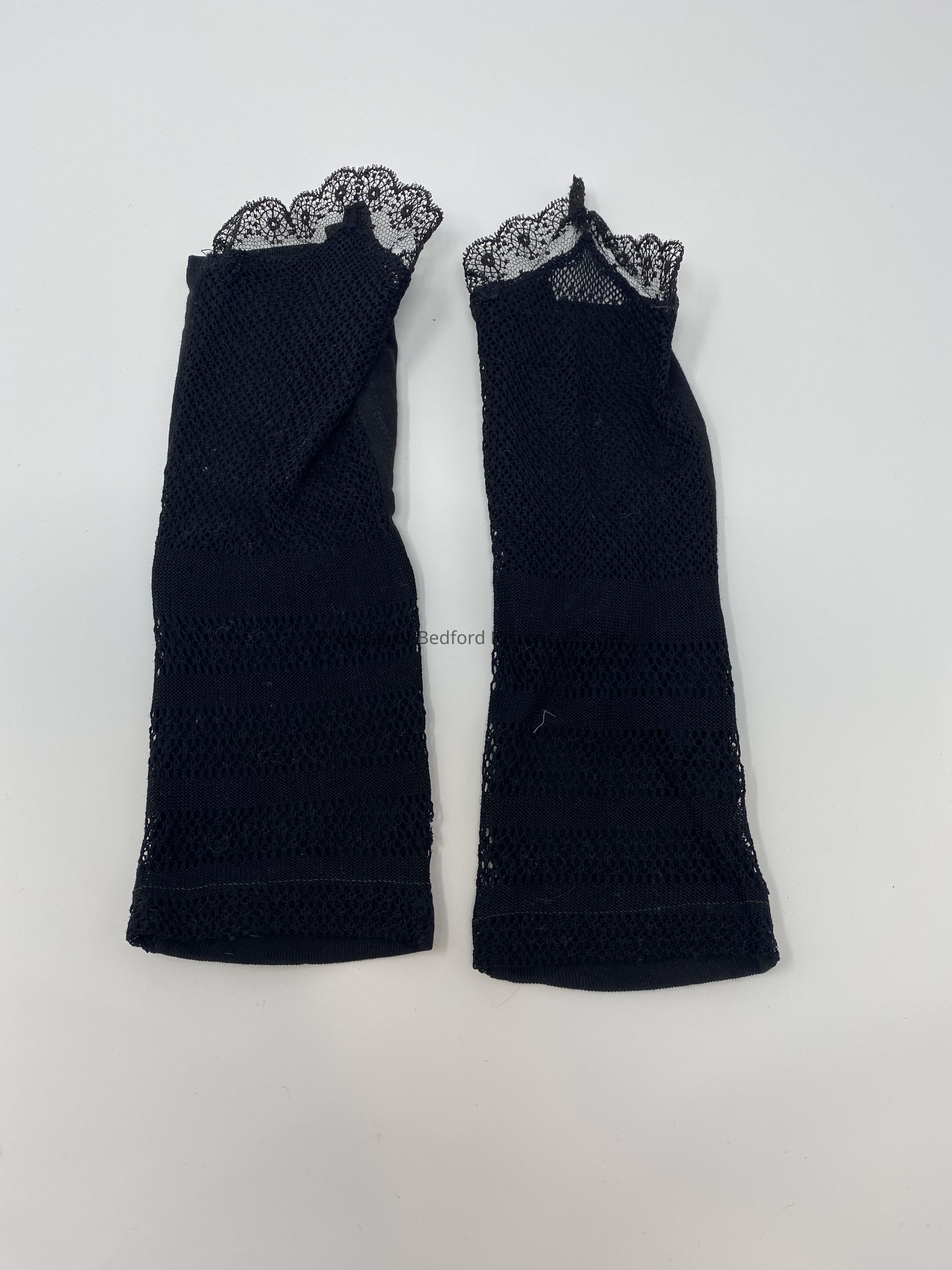 black cotton and lace fingerless gloves 9" L