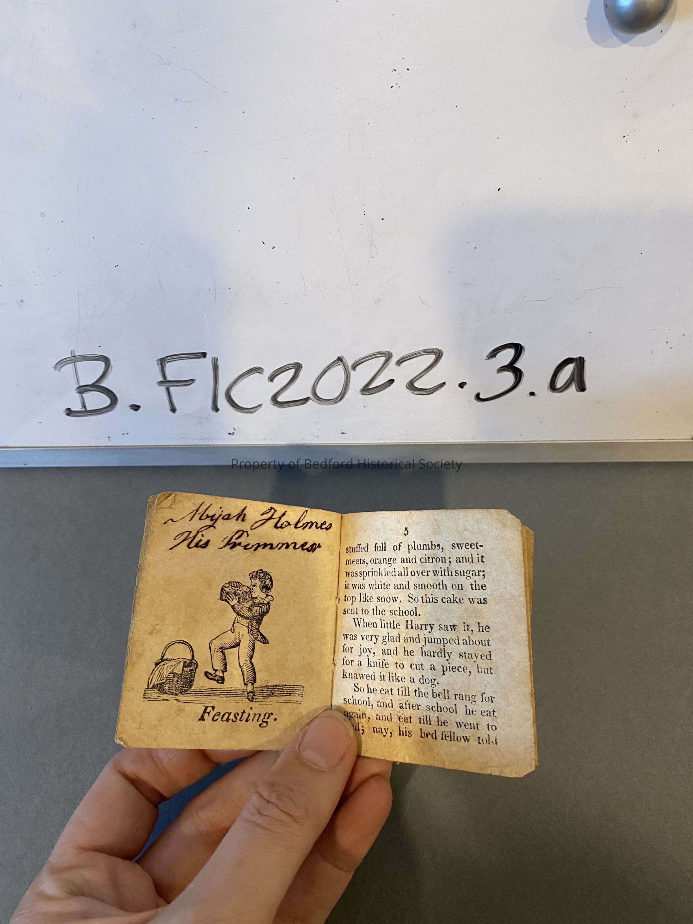 one of three mini booklet primers having belonged to Alijah Holmes. Fornt has picture and peom advertising book store it was sold from. Inside is handwritten incription "Alijah Holmes his primer"